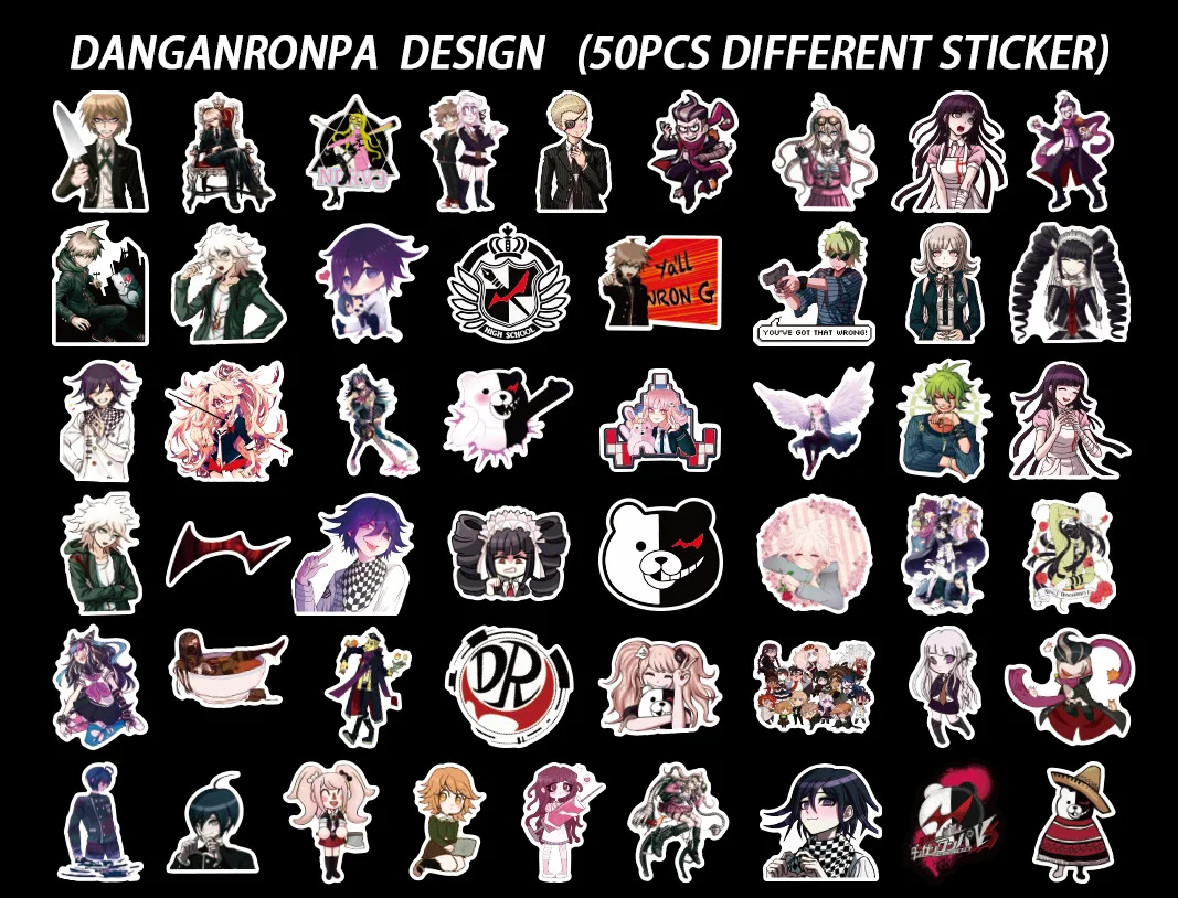 50 шт., водонепроницаемые классические наклейки Danganronpa наклейки из игры, для самостоятельной сборки, для ноутбука, чемодана, холодильника, гитары, граффити