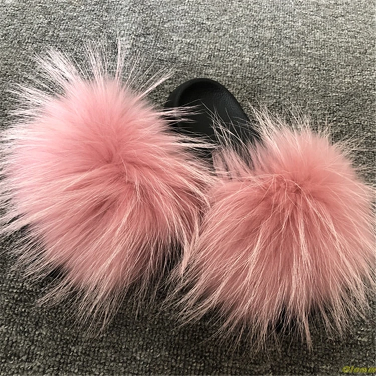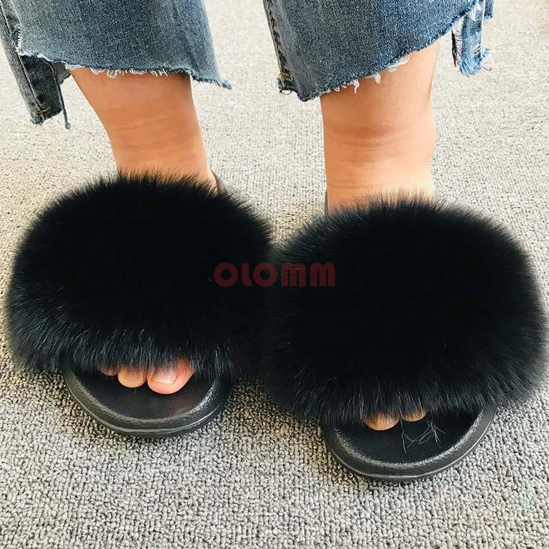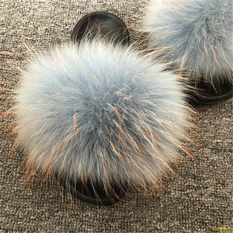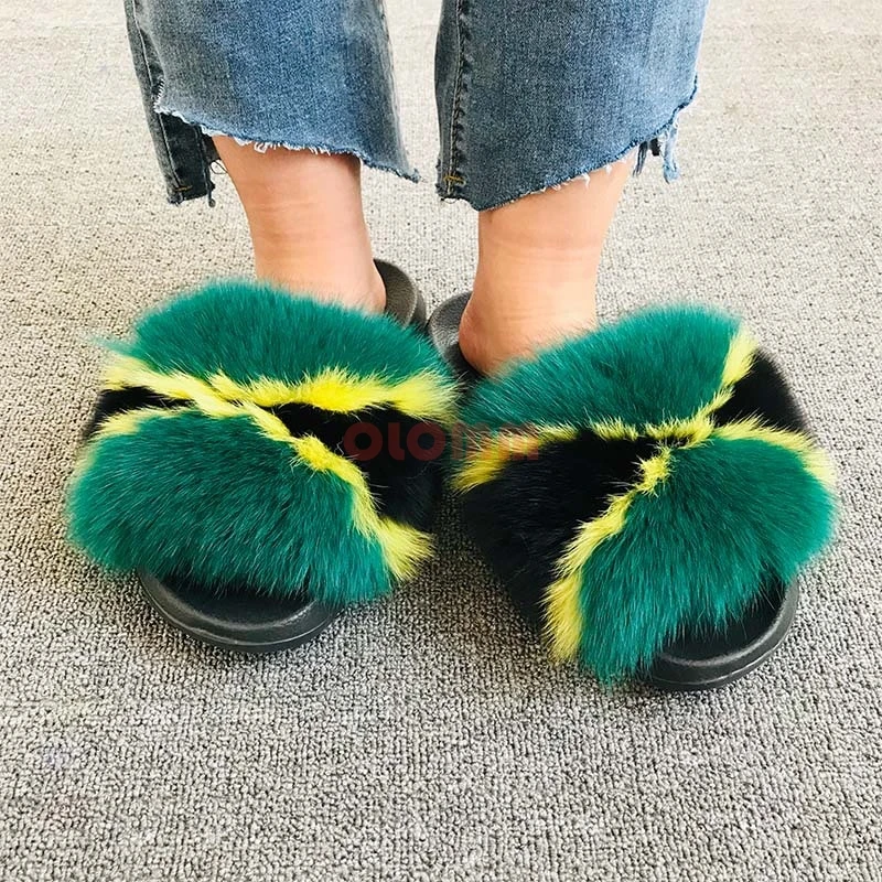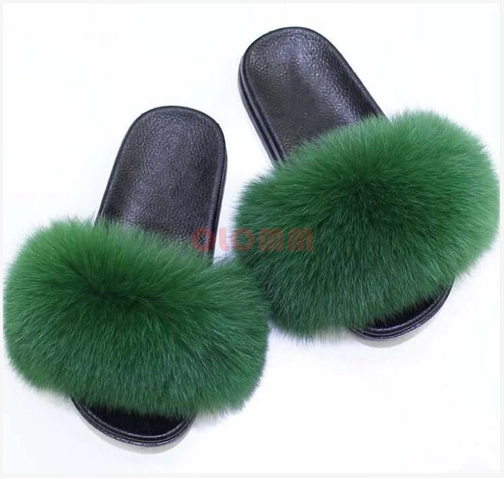 Женские пушистые Шлепанцы из натурального меха, смешанные цвета, шлепанцы из лисьего меха, пушистые женские модные пушистые шлепанцы, летняя пляжная обувь