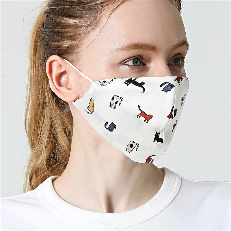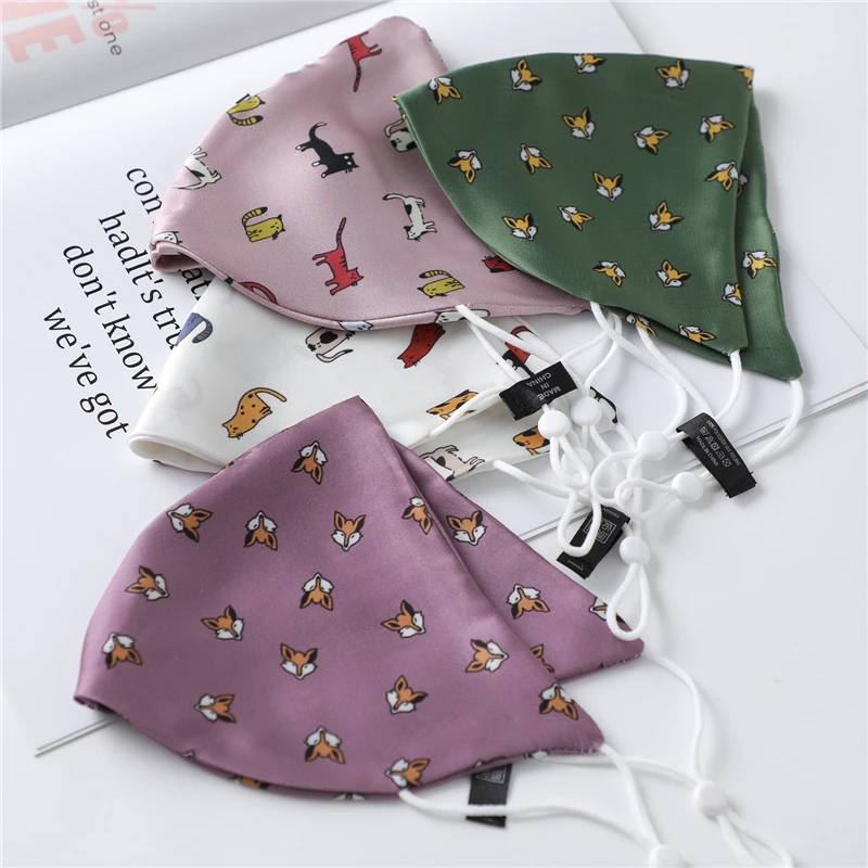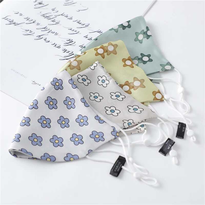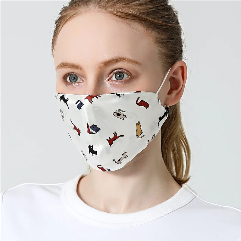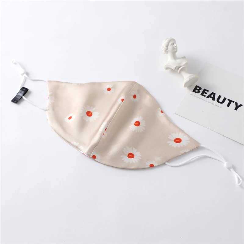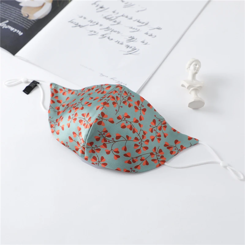 Шелковая Маска для лица женская, многоразовая, моющаяся, с принтом