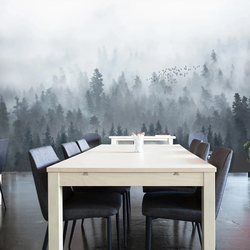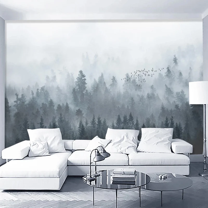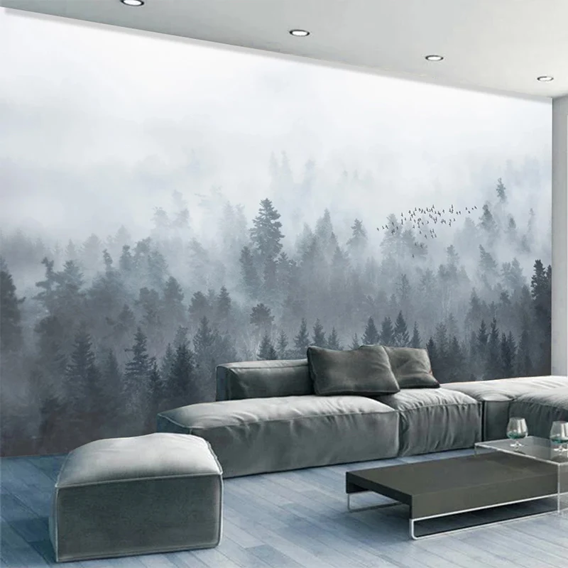 Настенные обои любых размеров на заказ, Современная красивая наклейка с изображением облаков, леса, тумана, гостиной, спальни, домашний декор