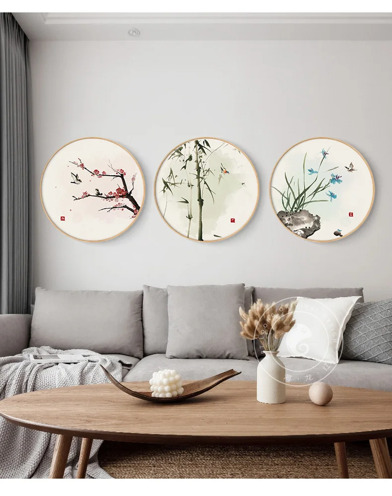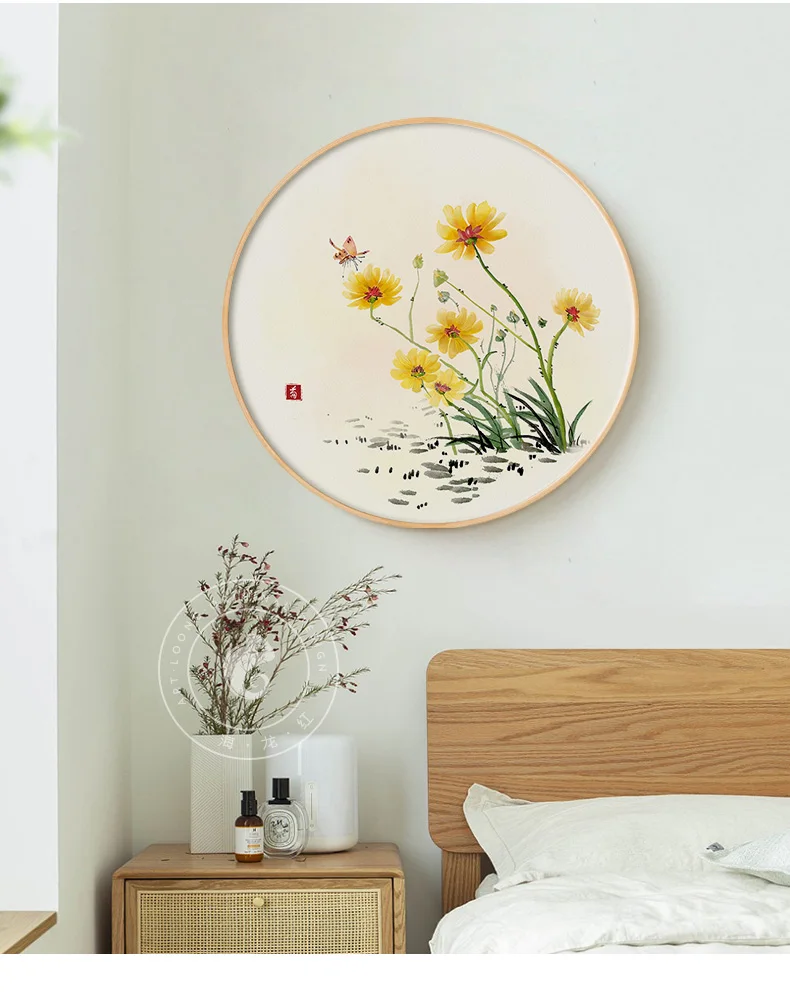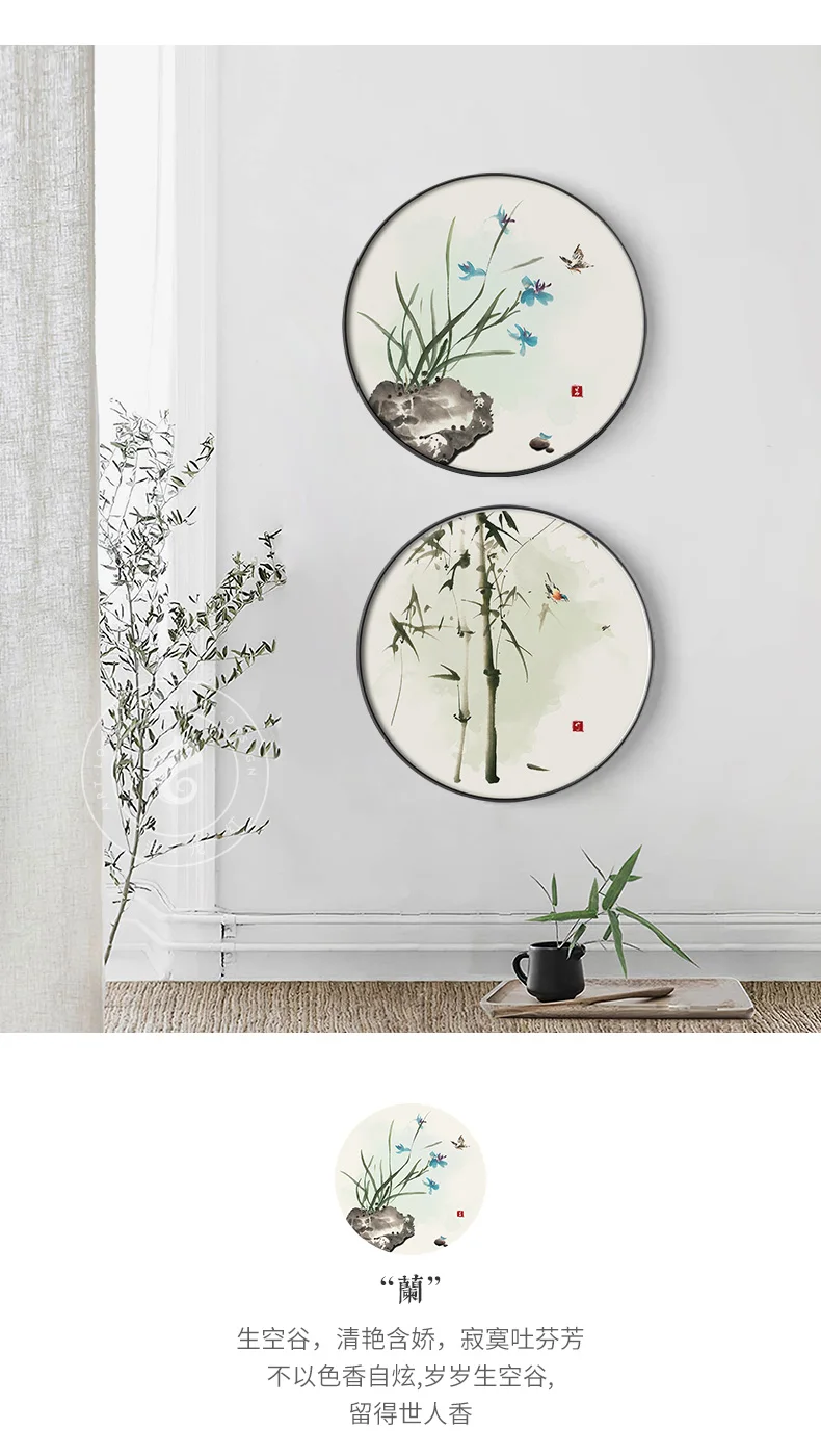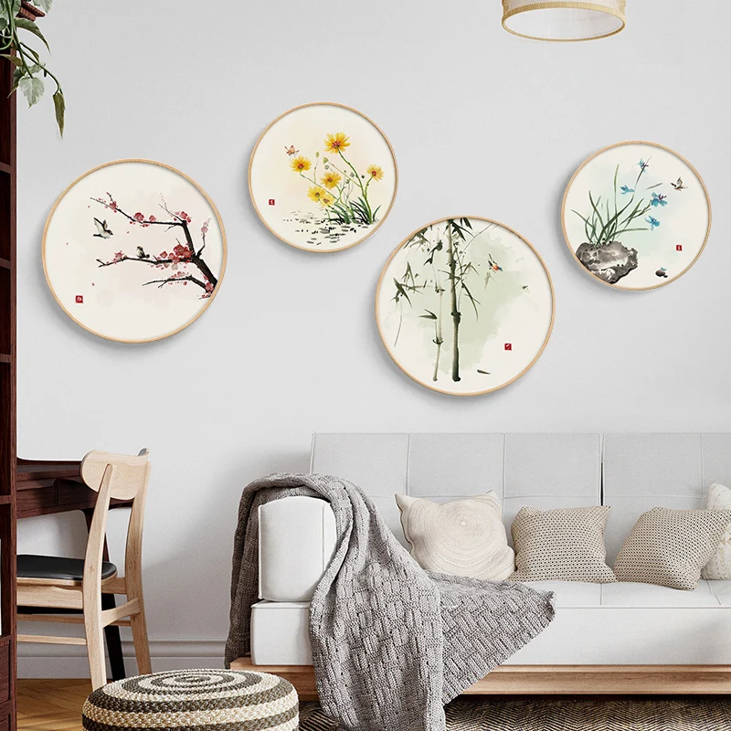 Постеры и печатные круглые настенные картины в китайском стиле с цветами, традиционные картины для гостиной, спальни, коридора
