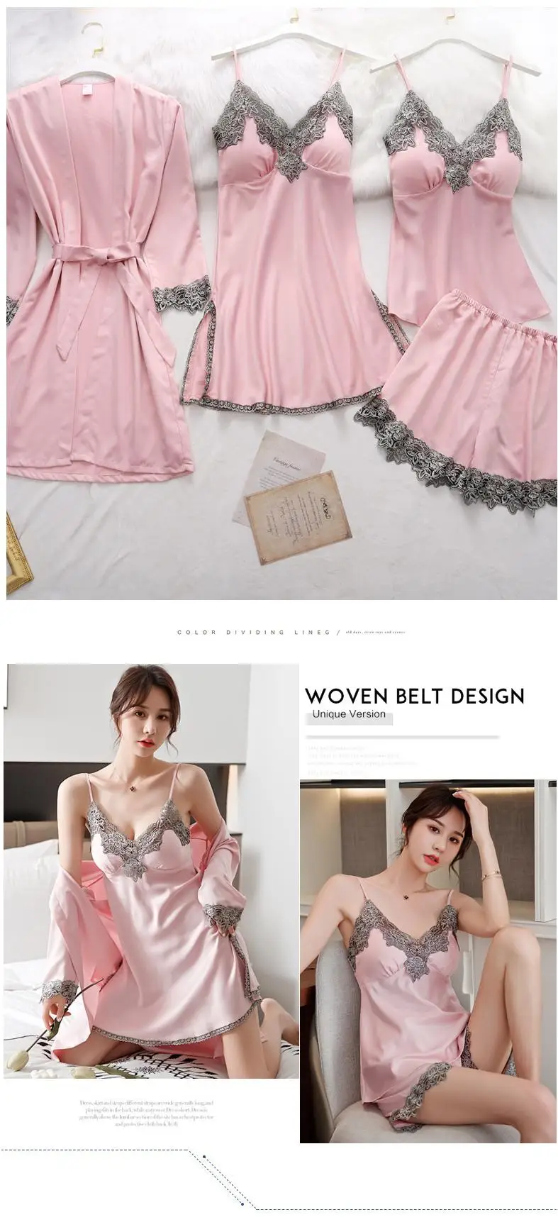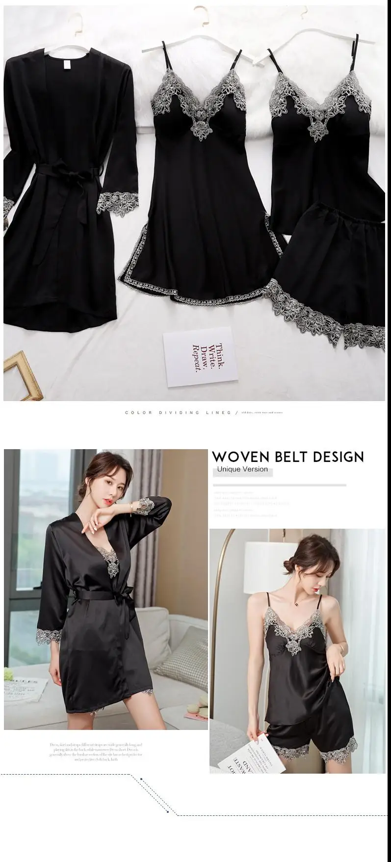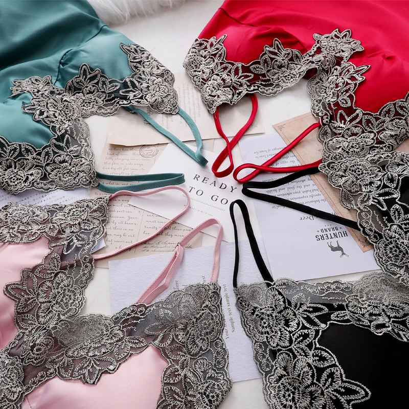 Ночная рубашка женская кружевная атласная, комплект одежды для сна, пикантная ночная рубашка, кимоно, банная сорочка, повседневное интимное нижнее белье, ночная рубашка, домашняя одежда