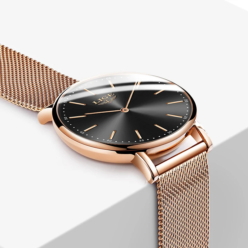 Часы наручные LIGE женские кварцевые, брендовые Роскошные деловые, с браслетом из розового золота, 2021