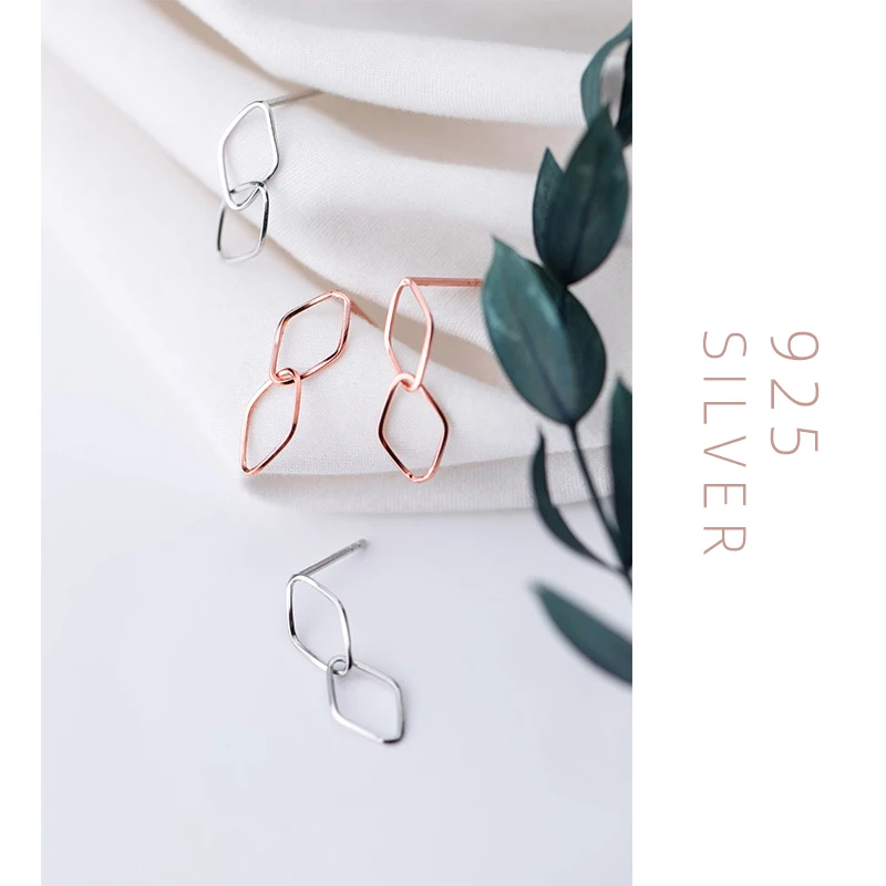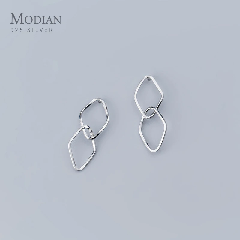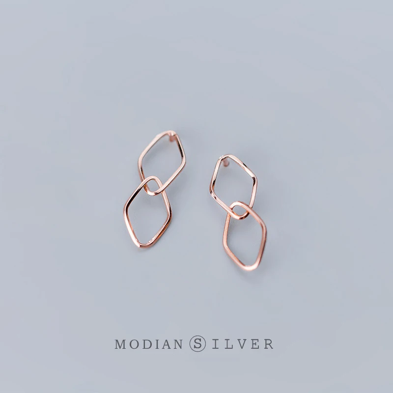 Женские серьги-подвески MODIAN из розового золота, серьги-ромб из серебра 925 пробы с геометрическим узором, ювелирные украшения