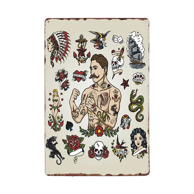Новинка, подвесная картина для тату-магазина, парикмахерской, Декор, металлическая пластина, плакаты, винтажные настенные Стикеры, художественные железные таблички, украшения 20x30 см