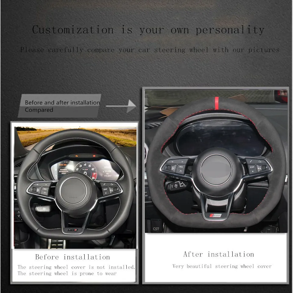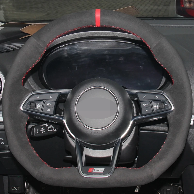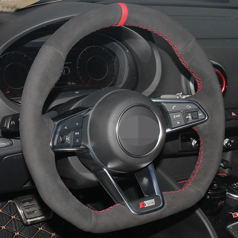 Чехол рулевого колеса автомобиля для Audi TT 2017 DIY сшитые вручную Нескользящие Черные Мягкие Замшевые аксессуары для интерьера