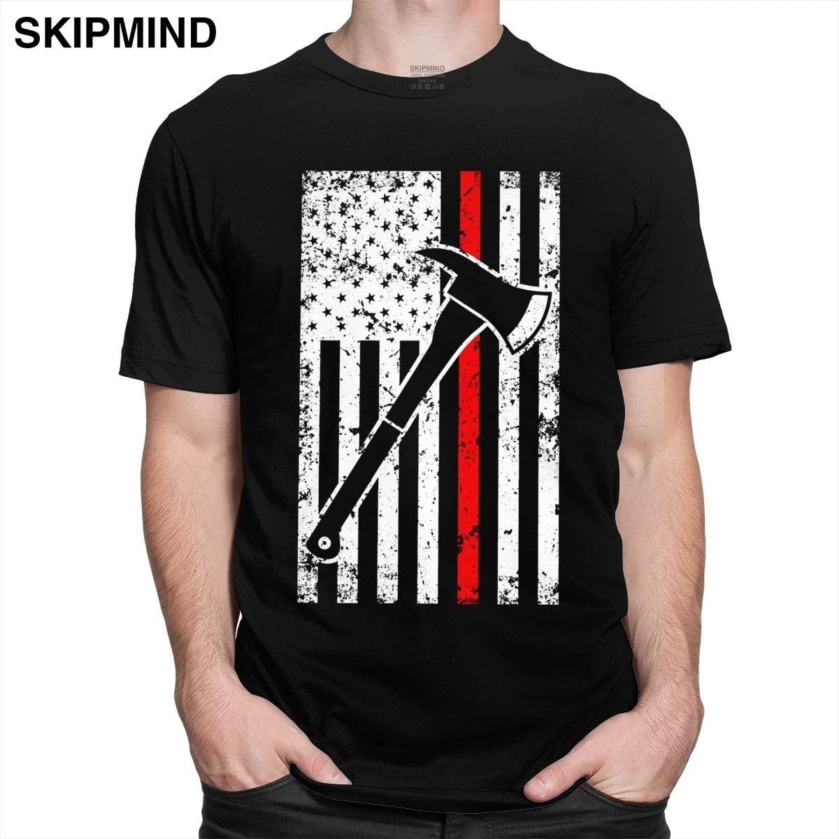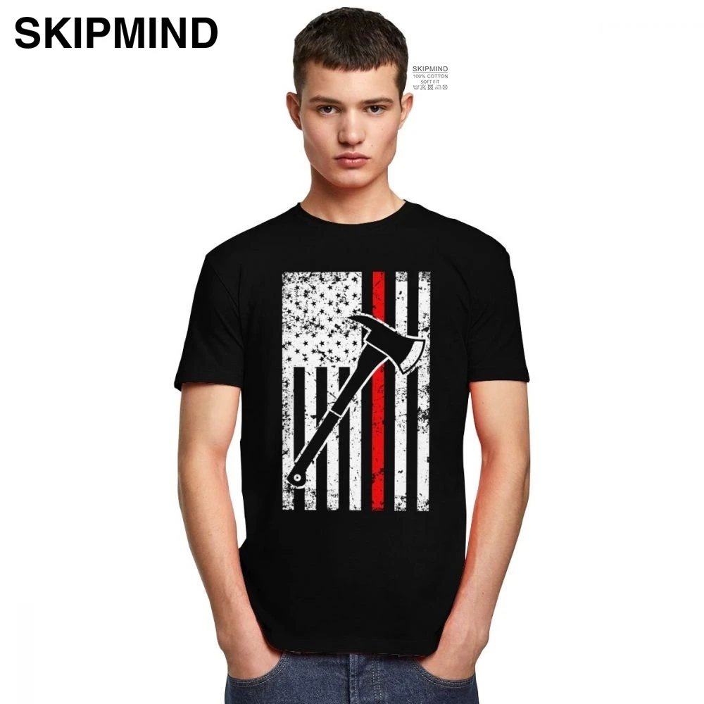 Винтажная тонкая футболка с красной линией пожарного, Мужская хлопковая футболка с коротким рукавом и американским флагом футболка патриота Axe, дизайнерская футболка, подарок