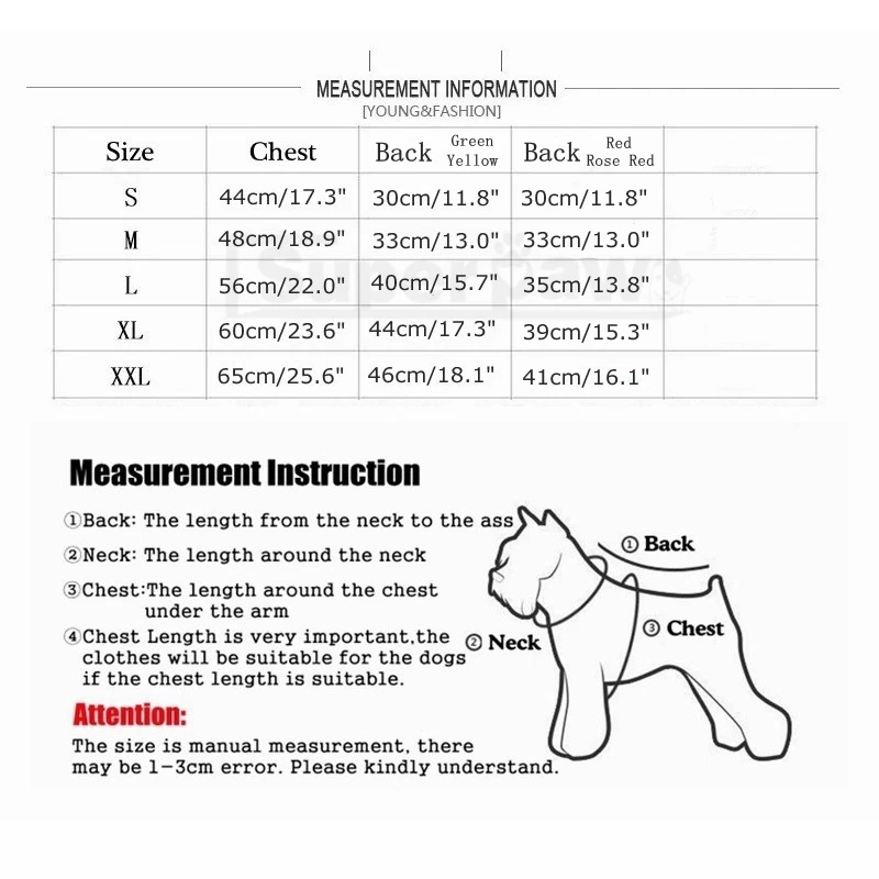 2. Для двух ног, пожалуйста, обратите внимание на обхват груди, и для четырех ног, должны соответствовать обхвату груди и длине спины.