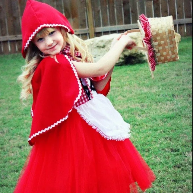 Красная Шапочка для девочек, костюм на Хэллоуин, маленький красный костюм с шапочкой, детское платье с накидкой