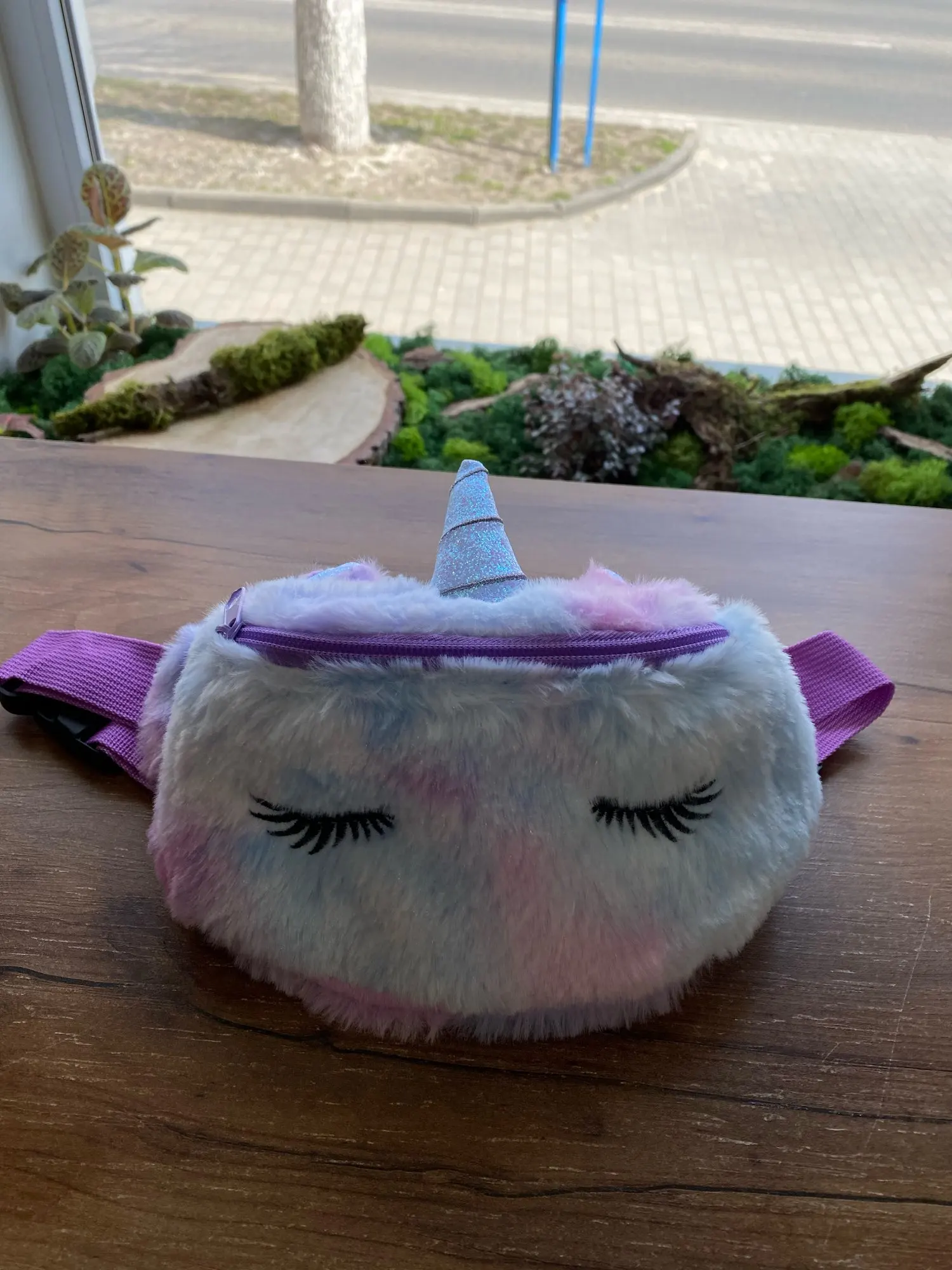Детская поясная сумка с единорогом для девочек, забавная плюшевая нагрудная Сумочка с градиентными цветами, мультяшный кошелек для мелочи, дорожная нагрудная сумка