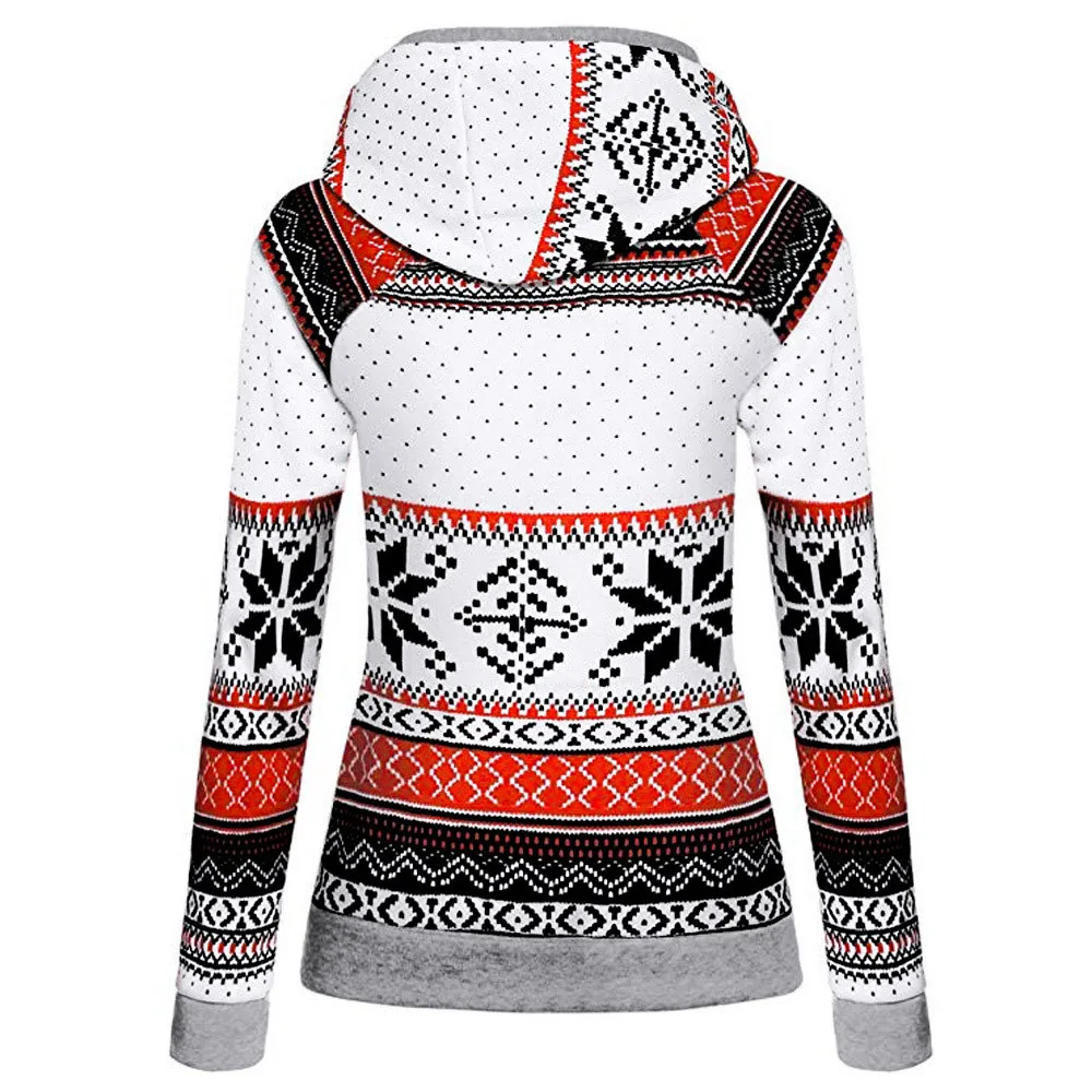 Женский пуловер на молнии с рождественским принтом, толстовка с капюшоном, топы