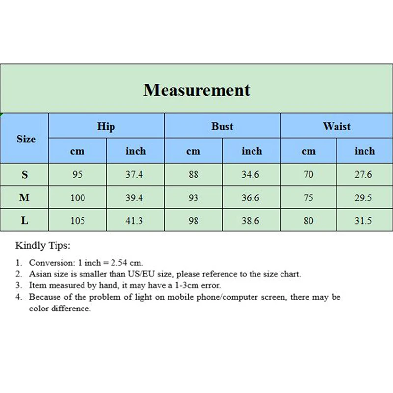 Особенности100% новый.Материал:ПолиэстерРазмеры: Обхват грудиОбхват талииОбхват бедер S88 см70 см95 см М93 см75 см100 см L98 см80 см105 см Преобразование: 1 дюйм = 2,54 см, 1 см = 0,393 дюймаПолезный совет: Напоминаем, что из-за световых эффектов, настроек яркости и контрастности мониторов и прочих факторов могут наблюдаться некоторые отличия в цвете между фотографией на сайте и самим товаром.Измерения проводятся вручную; возможна погрешность в 1 см; благодарим за понимание.