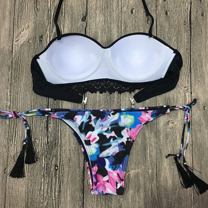 Бикини, стринги, с принтом, купальный костюм, с кисточками, купальник для женщин, сексуальный купальник, женский, пуш-ап, купальный костюм, новинка, бикини