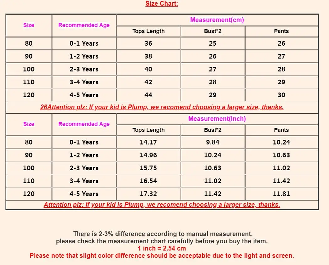 Посылка: 1 футболка и 1 штаны на бретеляхОбратите внимание: если ваш ребенок пухленький, мы рекомендуем выбрать больший размер, спасибо.