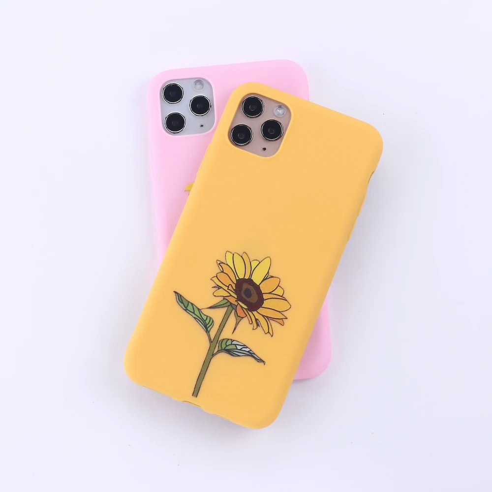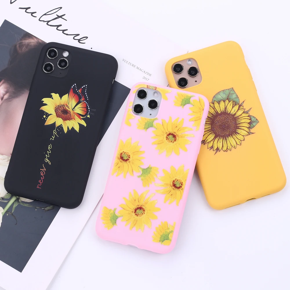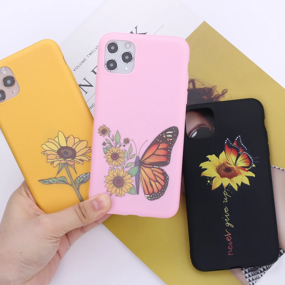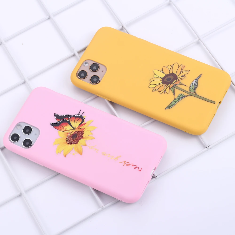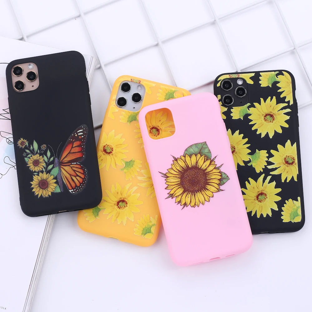 Мягкий силиконовый чехол с подсолнухами и бабочками для iPhone 12, 11 Pro Max, X, XS, XR Max, 7, 8, 7Plus, 8Plus