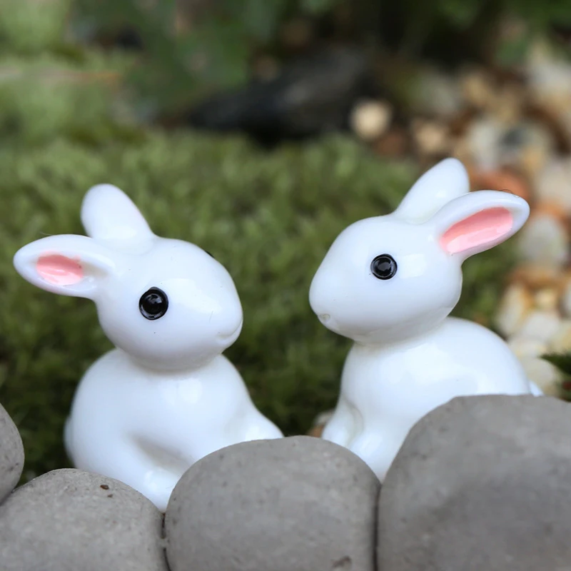 Миниатюрный миниатюрный полимерный мини-кролик, 2 шт., сказочное украшение для сада, цветочный горшок для растений, домашняя фигурка, декор для животных