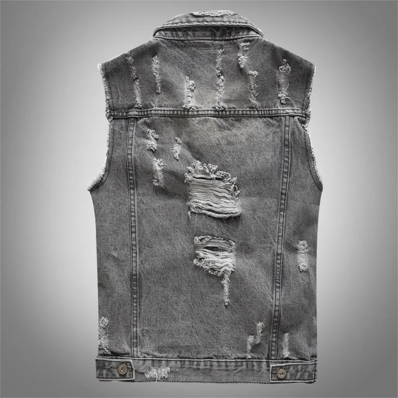 В винтажном стиле; Сезон весна-осень Дизайнерские мужские джинсовый жилет мужской ретро Куртки без рукавов мужские рваные джинсовые жилеты для Размеры M-5XL