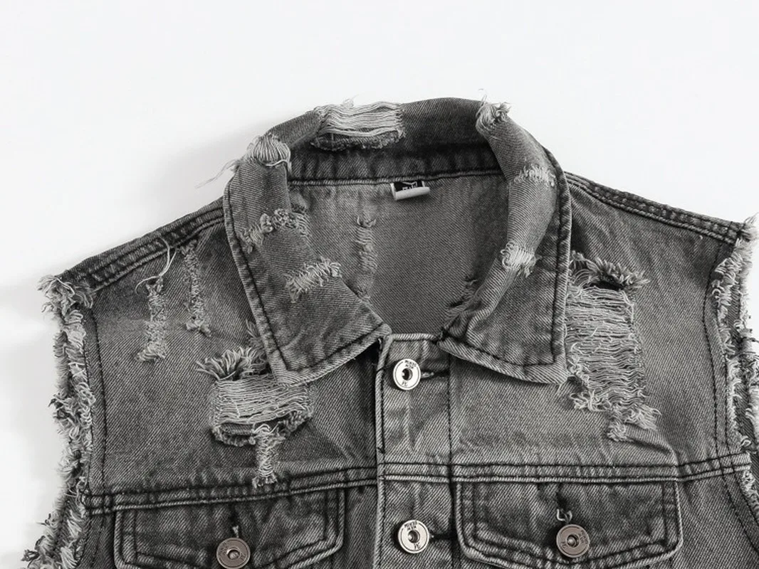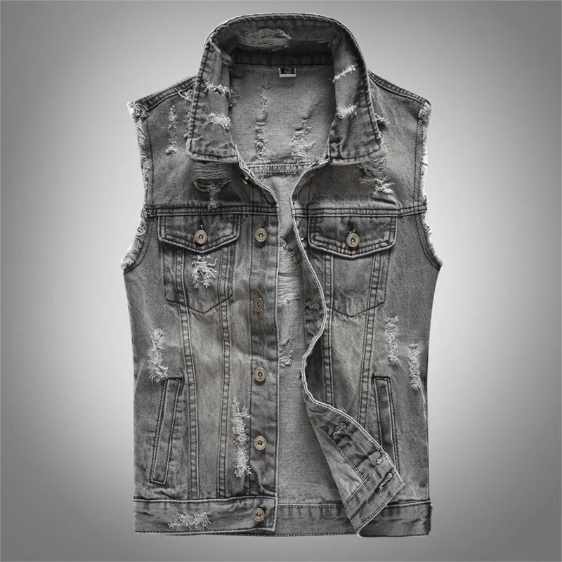 Жилет мужской джинсовый, демисезонный, рваный, без рукавов, M-5XL