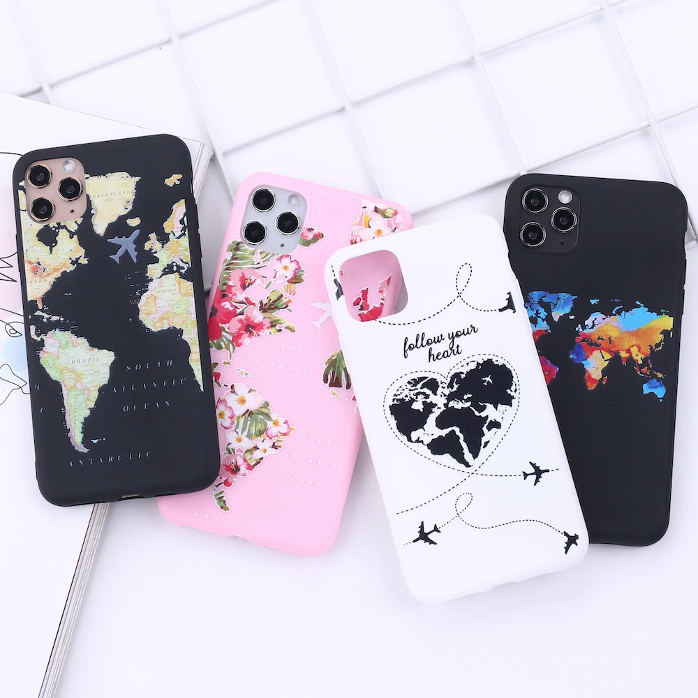 Чехол для телефона с картой мира, полет, последорожное приключение, чехол для iPhone 12 11 13Pro Max X XS XR Max 7 8 7Plus 8Plus, мягкий силиконовый чехол карамельных цветов
