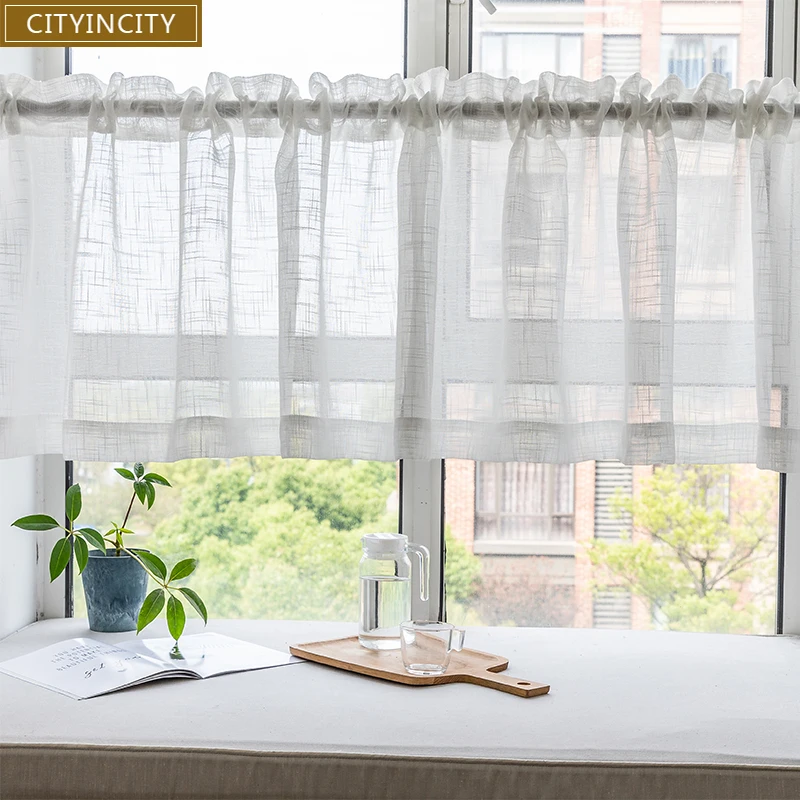 Занавеска из искусственного льна CIC для кухни, полупрозрачная прозрачная шторка для дома, Тюлевая короткая дверная занавеска s для бара, спальни