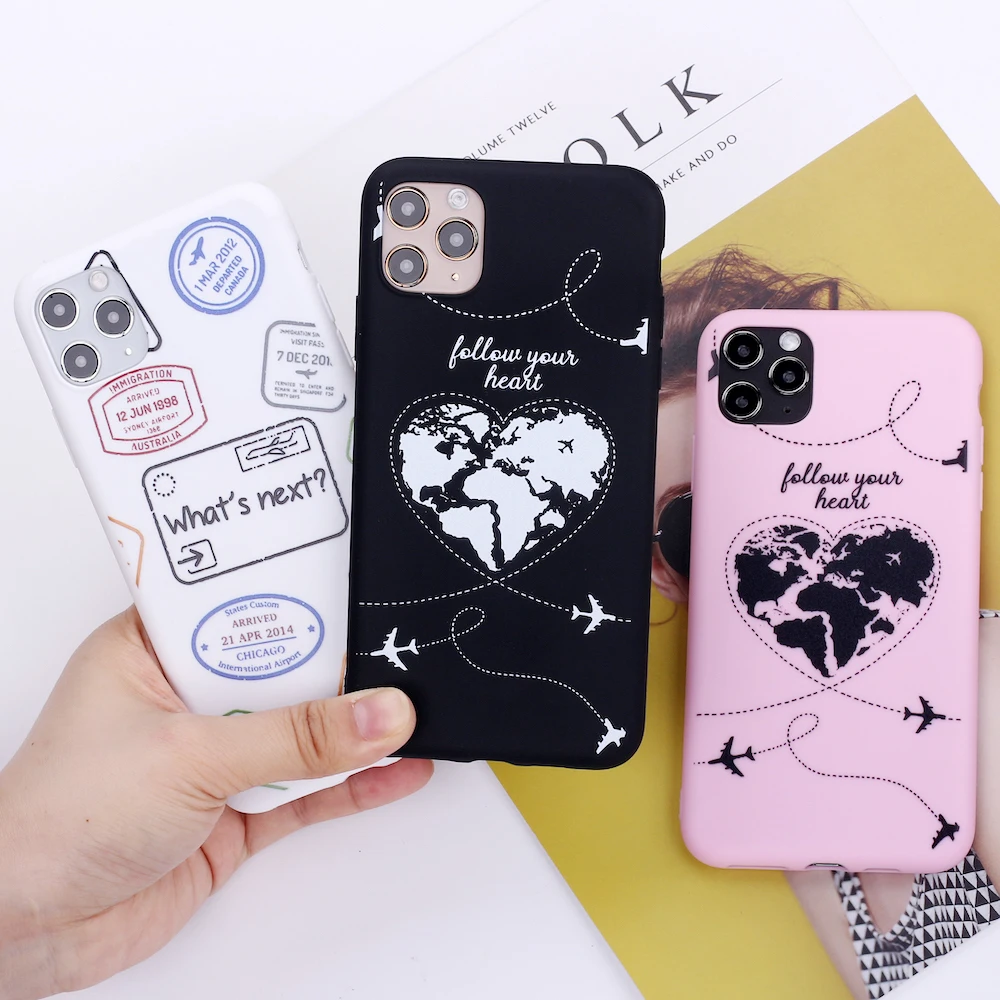 Чехол для телефона с картой мира, приключениями, полетом, почтовым знаком для iPhone 11 12 13Pro Max XS XR Max 7 8 7Plus 8Plus SE, мягкий силиконовый чехол карамельных цветов