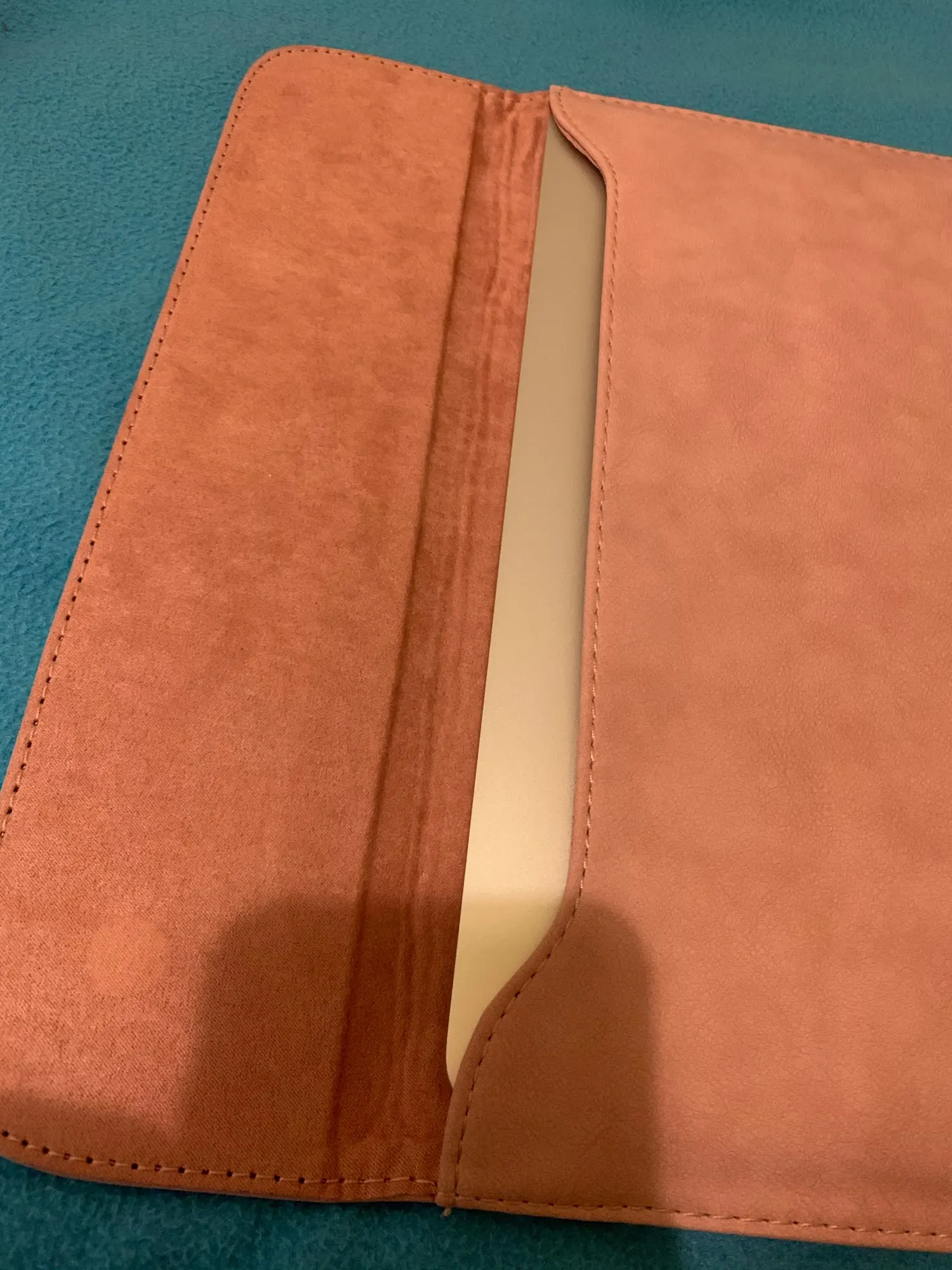 Это заняло около 1 месяца, и мне нравится этот чехол. Очень мягкий на ощупь, и мне нравится, как он на магните, когда вы закрываете крышку. Мне также нравится, как поставляется с дополнительным мешком. Довольно хороший продукт.