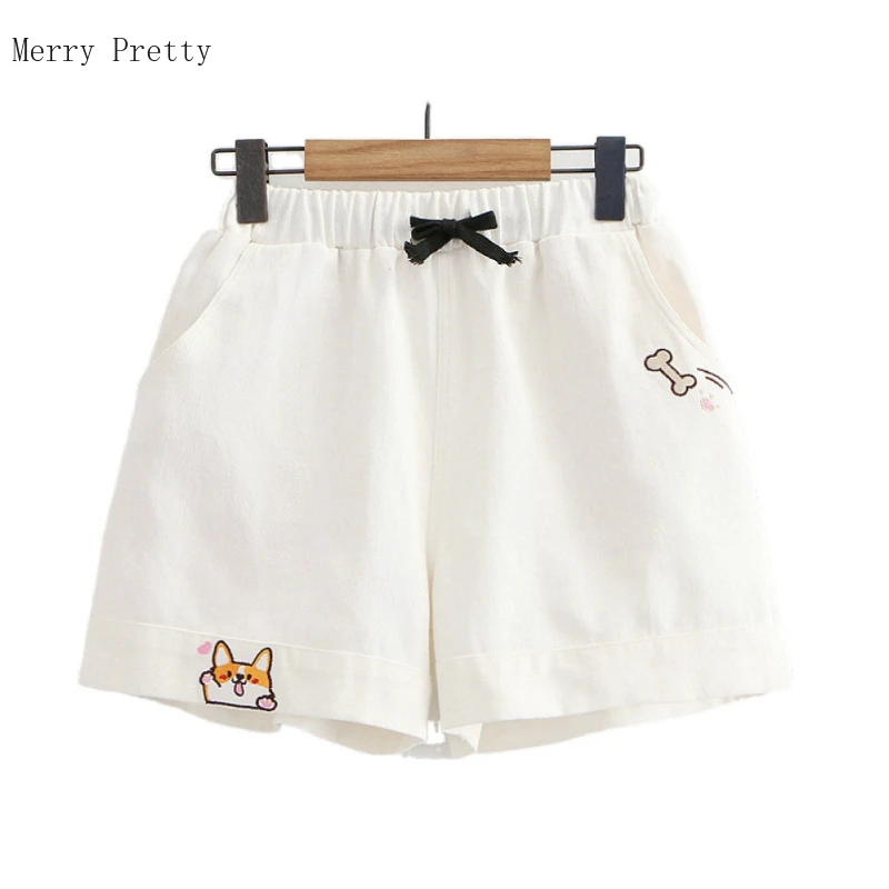 Шорты женские с завышенной талией, с вышивкой и карманами, в Корейском стиле, шорты в стиле харадзю, лето 2020