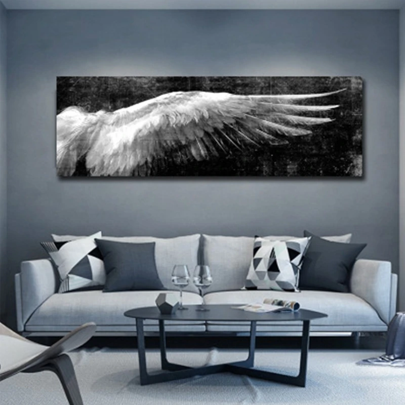 Черно-белый плакат с крыльями ангела, холст, художественные плакаты...