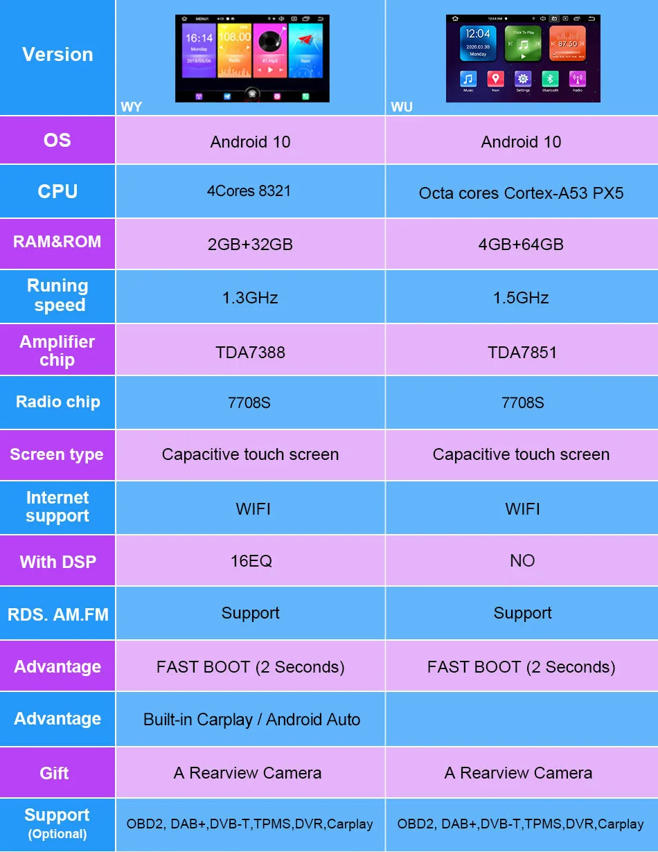 Подарки:1. Бесплатная карта2. Бесплатная камера заднего видаКлючевые особенности:1. Встроенный Carplay, не требует использования ключа carplay, подключите нашу машину к своему смартфону напрямую2. Быстрая загрузка, всего две секунды, машина начнет3. ОС Android 10Функции:GPS / Bluetooth/Радио/RDS/Встроенный Wi-Fi / Mirror-Link / DSP/Встроенный CarPlay / USB / SWC / AUX in/Games/Встроенный Can-Bus/8-цветсветильникВидеовход: камераАудиовход: AUX1Видеовыход: video1/video2Аудиовыход: FL/FR/RL/RR/сабвуферВерсия BT: 4,0Для серии VW:Для Passat 2007-2015/ Tiguan 2007-2015/транспортер T5 2010-2011/ Passat CC 2008-2015Touran 2003-2015/EOS 2006-2011/ Golf V 2003-2015/ Caddy 2004-2015/ Scirocco 2008-2015/Golf VI 2008-2015/ Jetta 2005-2015/Bora 2009-2015/ Golf Plus 2003-2009/ Golf Mk5 2003-2015/Новое поло 2010-2015/ Sharan 2010-2011/ Leon 2005-2010/Seat Altea 2007-2011/Толедо 2004-2009/сиденье Альгамбра 2010-2011Для серии Skoda:Для Fabia Limousine от 02/2007 до 2012Для Fabia Combi от 04/2007 до 2012Для Praktic от 04/2007 до 2012Для Roomster от 04/2006 до 2012Для Octavia Combi 06/2004 до FaceliftДля Octavia Limousine от 06/2004 до FaceliftДля Octavia II 2 & III3 (не подходит для Octavia 2014-)Для RapidДля Yeti от 2009 до 2012 (необходимо добавить рамку)Для Superb 3 T ab от 2008 до 2012Обратите внимание: Если вам нужна рамка для вашего автомобиля, пожалуйста, свяжитесь с нами перед отправкой.Для серий сидений:Для сиденья Leon 200520062007-2012Для сиденья Altea 2007,2008,2009,2010,2011Для сиденья Alhambra 2010,2011Для Seat Toledo 2004,2005,2006,2007,2008,2009Полезные советы:Мы приложили все усилия, чтобы сделать это устройство совместимым с автомобилями, но, пожалуйста, проверьте размеры продукта и форму автомобильной консоли перед покупкой, если вы не уверены, пожалуйста, свяжитесь с нами.