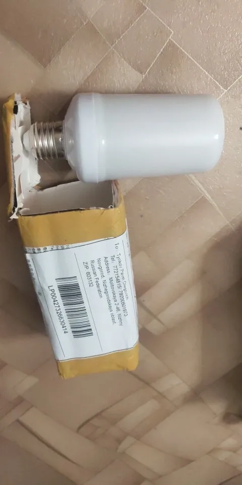 быстрая отправка,доставка 9 дней с треком,хорошо упаковано,лампочка хорошего качества,все работает,эффект пламени присутствует,когда лампу переворачиваешь пламя тоже переворачивается,прикольно,для создания комфортного отдыха самое то. хороший товар и продавец. спасибо.