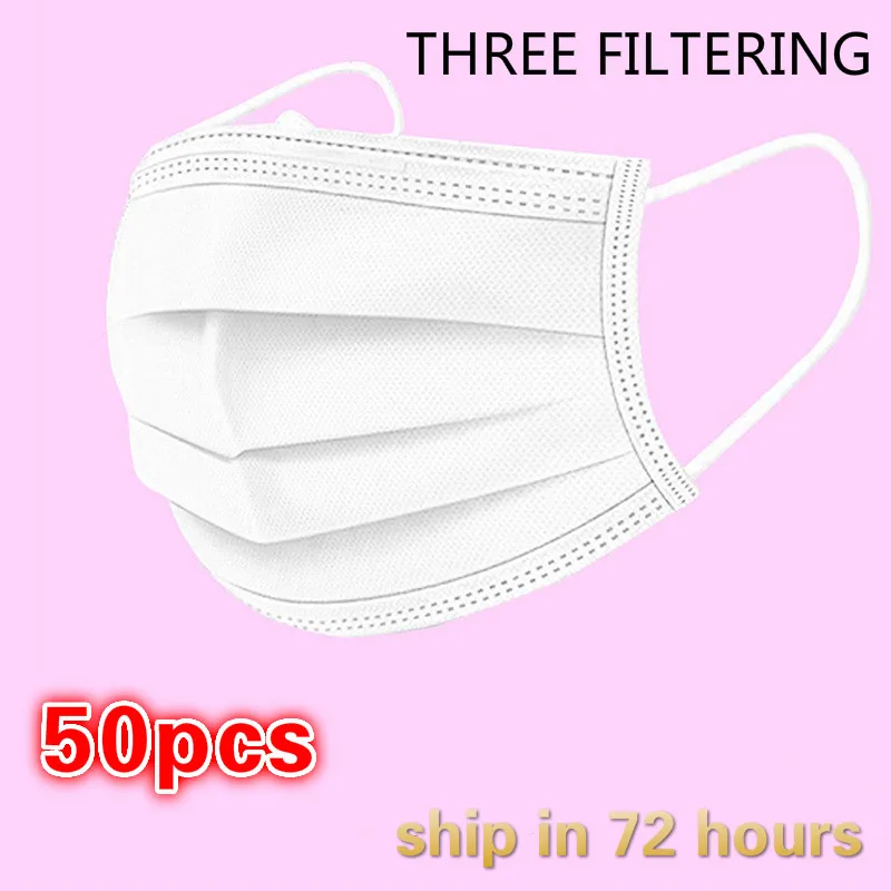 50100200 шт. Одноразовая маска для лица, маска для рта, респиратор для взрослых, маска для рта, Нетканая трехслойная фильтрующая маска белые лица