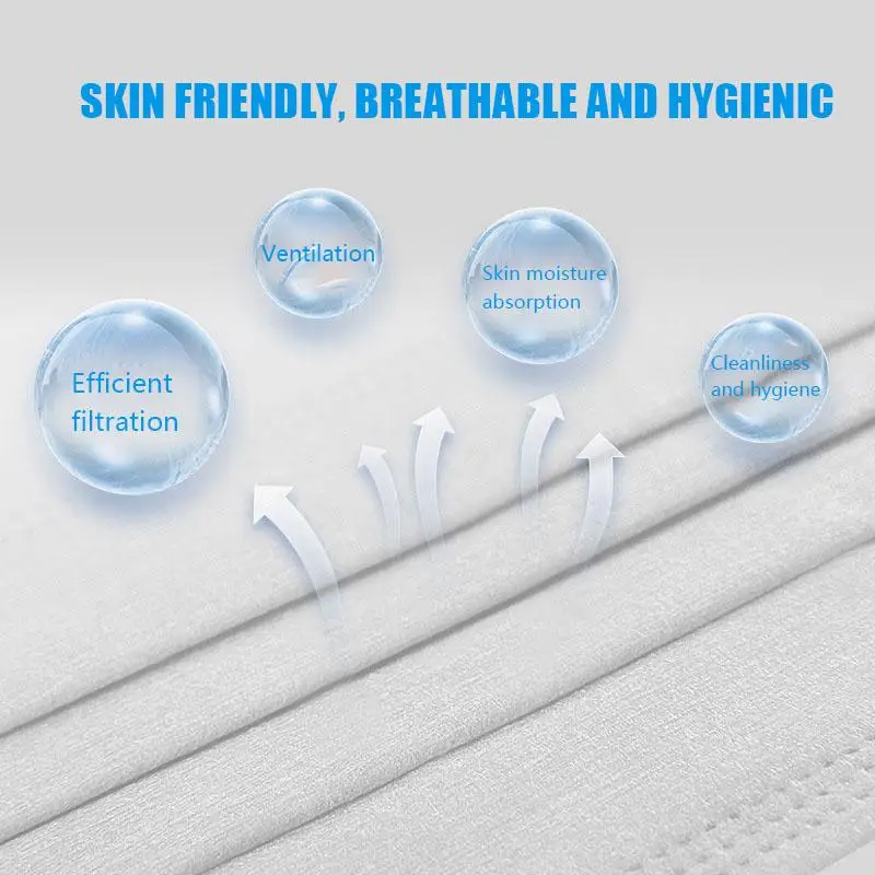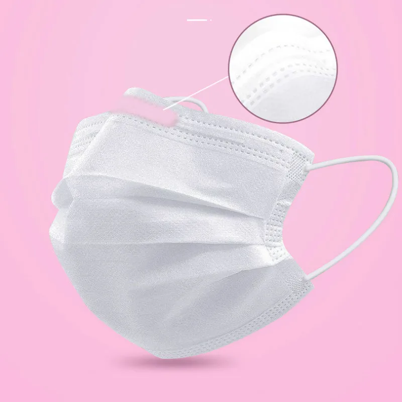 50/100/200 шт мешок Одноразовые маска для лица на маска респиратор для взрослых маска для лица из нетканого материала трехслойный фильтр маски белые лица Одноразовые подгузники белая маска из нетканого материала с защитой от пыли и пеногаситель Материал изделия: Нетканая/расплавленная выдувная ткань Размер продукта: 17,3*9,5 см Характеристики продукта: 1. Твердое нажатие на края, не легко открыть 2. Многослойная трехмерная складка, подходит для формы лица, 3. Три слоя фильтра эффективно блокирует частичную пыль в воздухе 4. Эластичный дизайн заушников, bubler уши