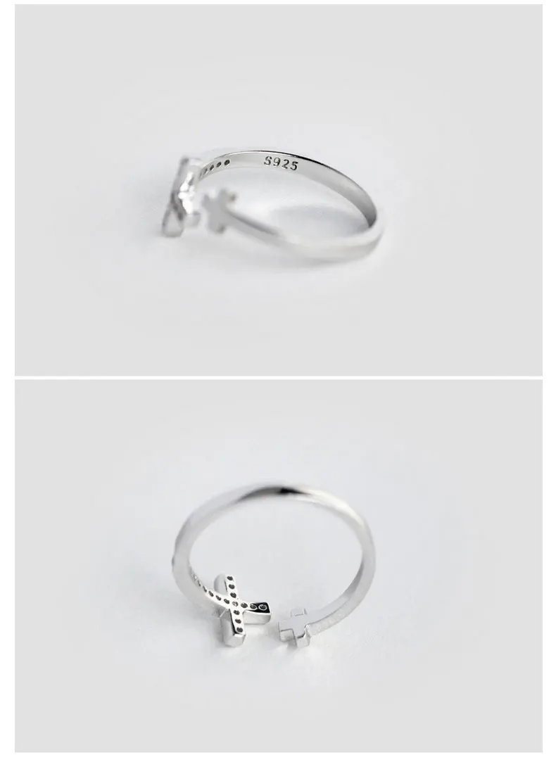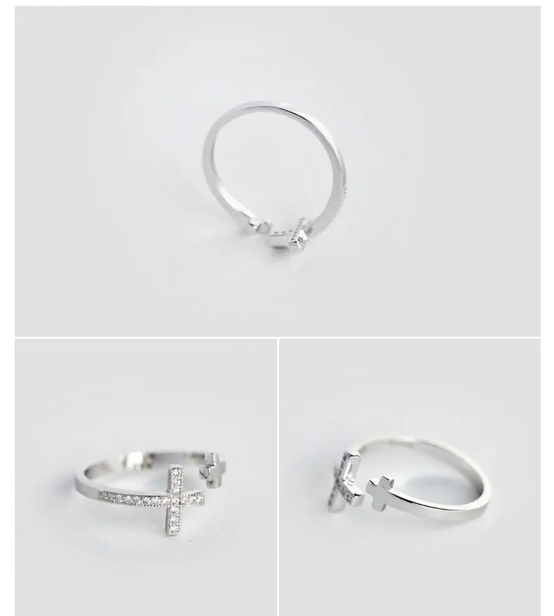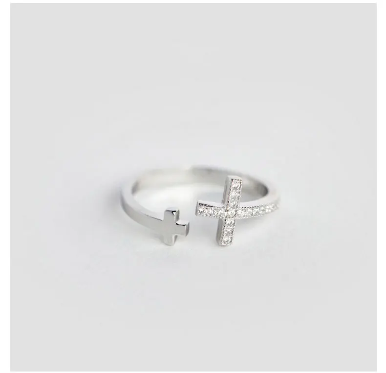 MIQIAO 925 пробы кольцо с двойным крестом регулируемое серебряное кольцо для женщин бриллиантовый Циркон на пальцах женский амулет минимализм подарок