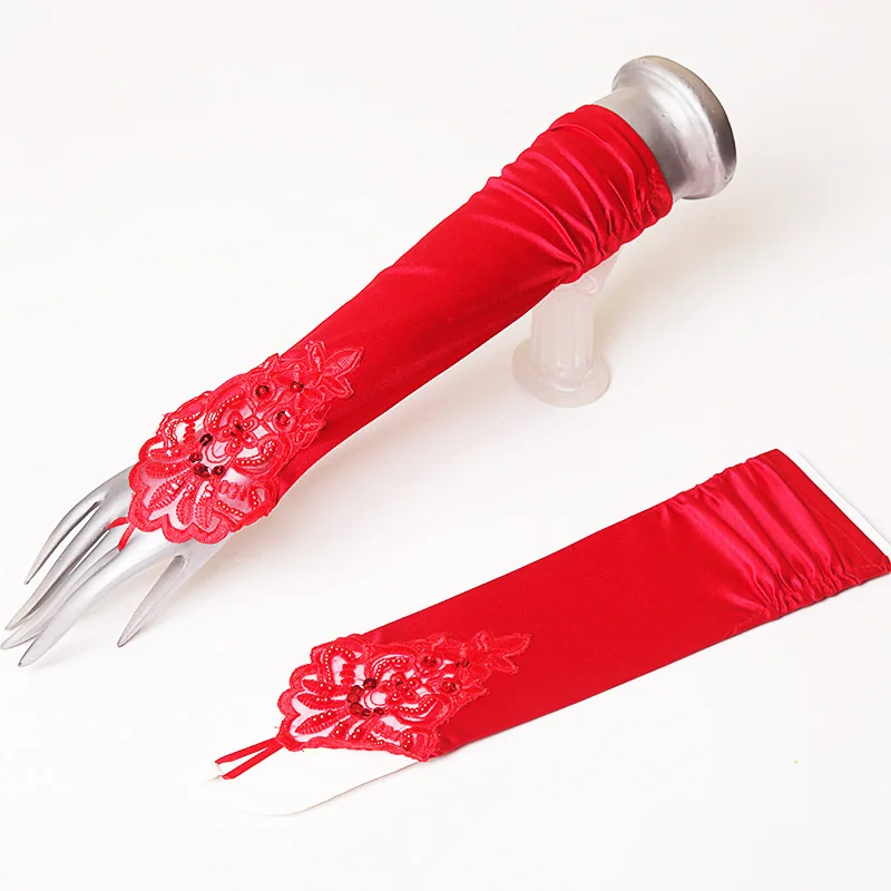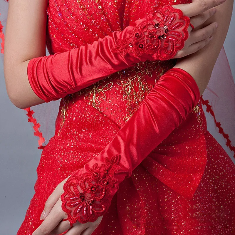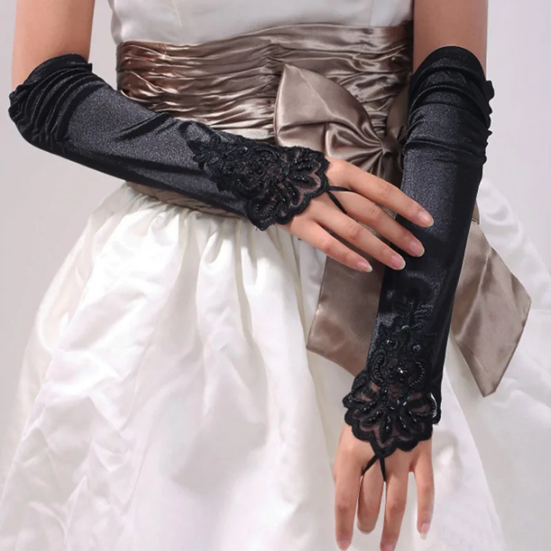 Перчатки женские атласные с полупальцами, пикантные с блестками и жемчугом, модные кружевные солнцезащитные для вождения, платье без пальцев, J41