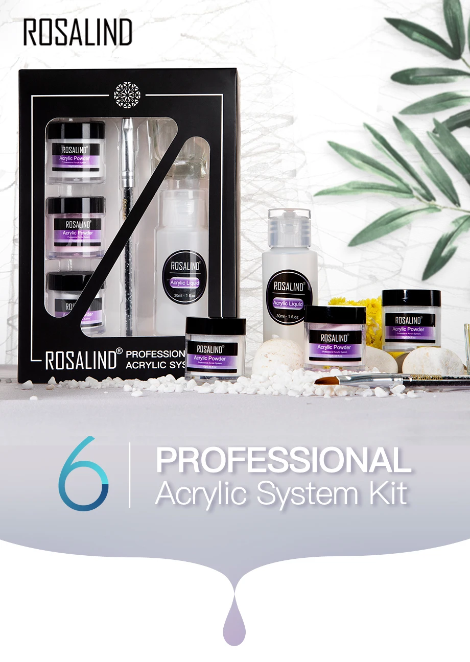 ROSALIND акриловый порошок для наращивания ногтей резной Гель-лак для ногтей 10 г/30 г акриловый кристаллический порошок маникюрный набор полигель для ногтей Дизайн ногтей