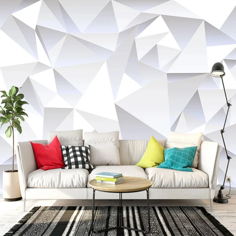 Настенные обои на заказ, Современная 3D стерео белая треугольная геометрическая бумага для гостиной, офиса, настенная живопись, Papel De Parede 3 D