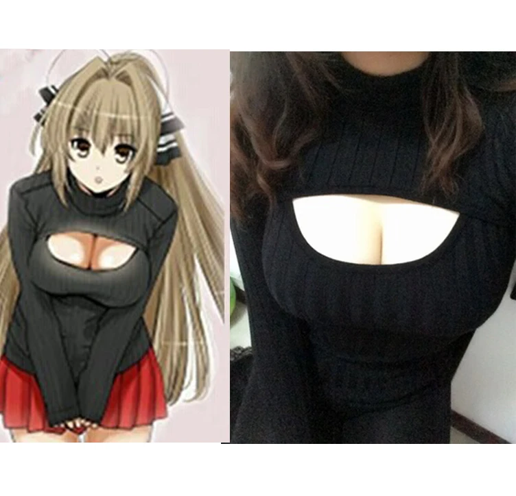 Женский свитер с открытой грудью и замочной скважиной, в японском стиле