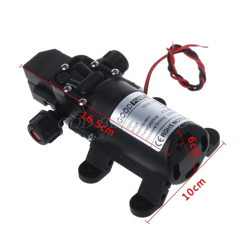 Водяной мембранный самовсасывающий насос высокого давления, 12 В постоянного тока, 130 фунтов на квадратный дюйм, 6 лмин, 70 Вт