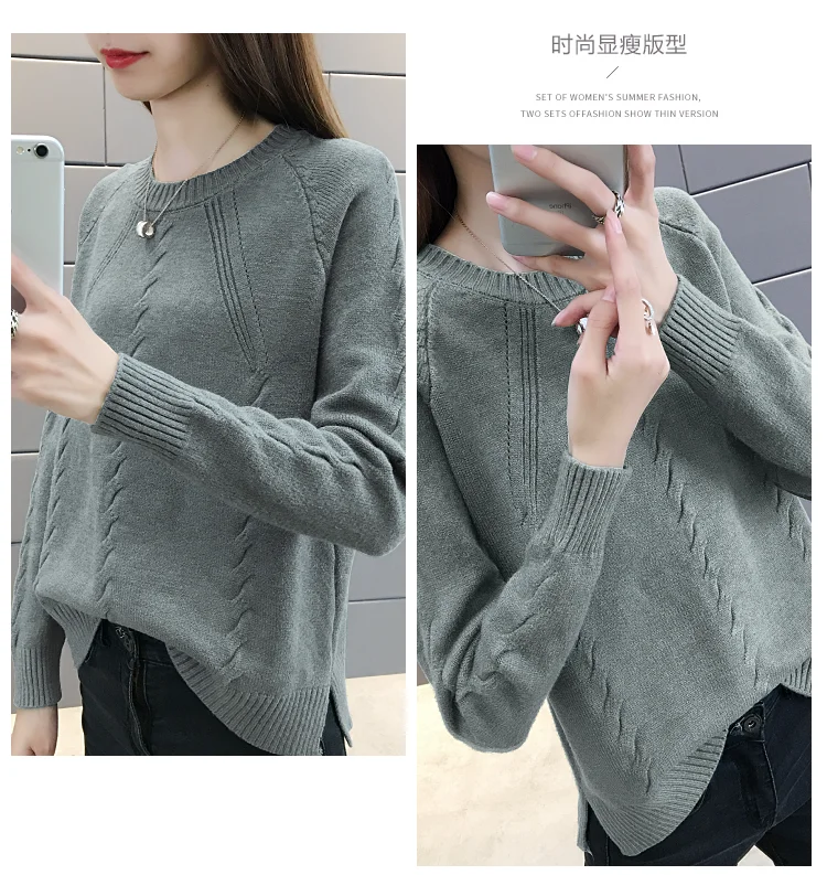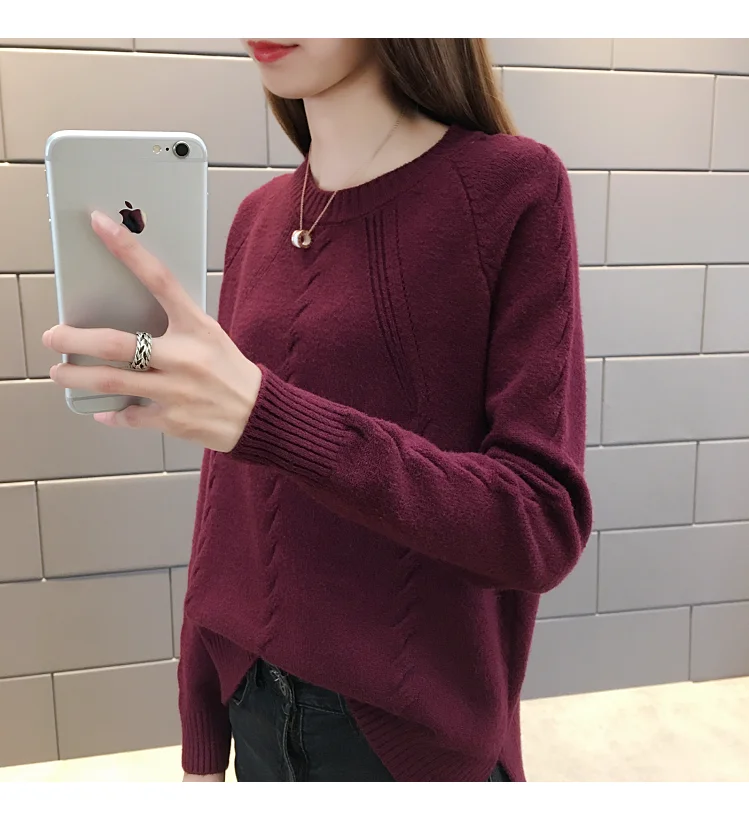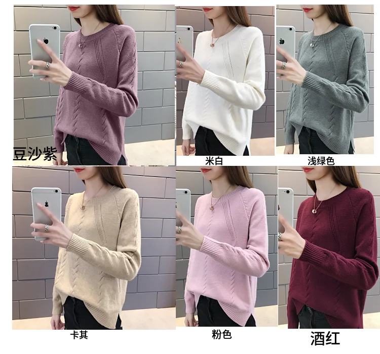 Женский свитер с круглым вырезом Zuolunouba, однотонный свободный свитер, Осень-зима 2020