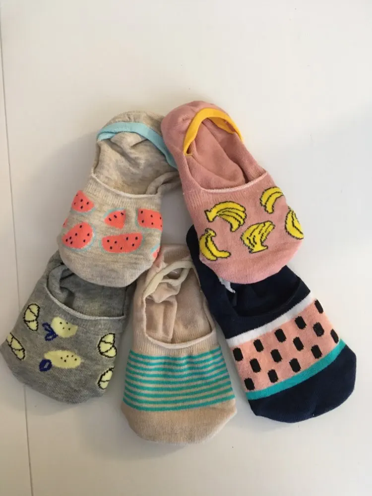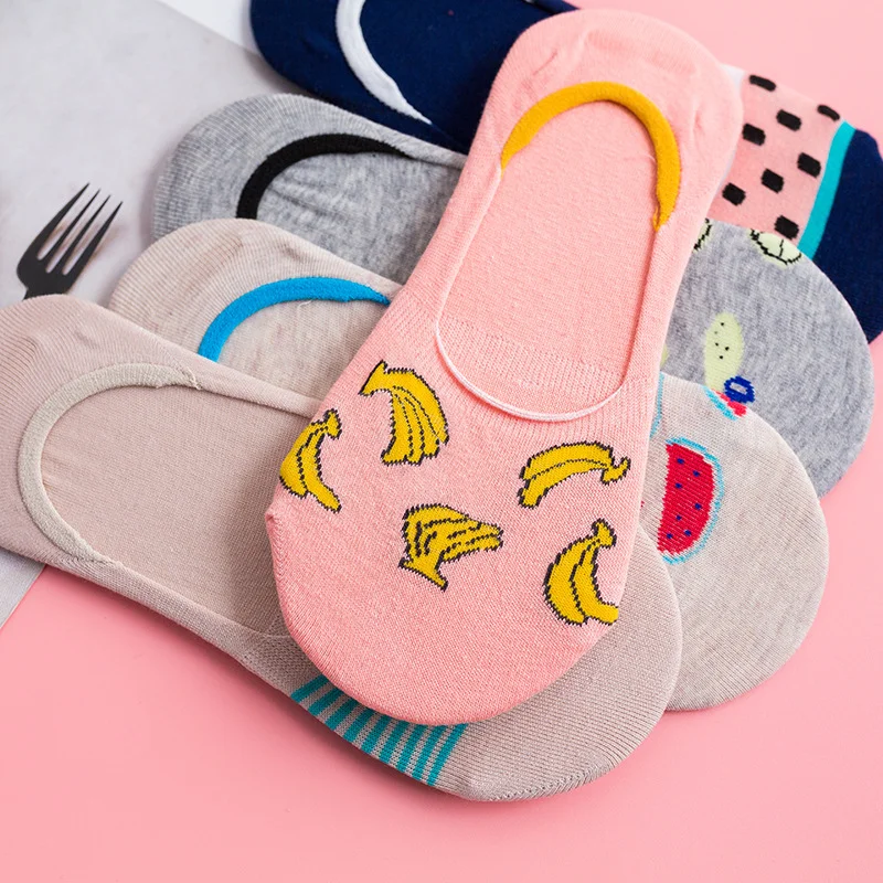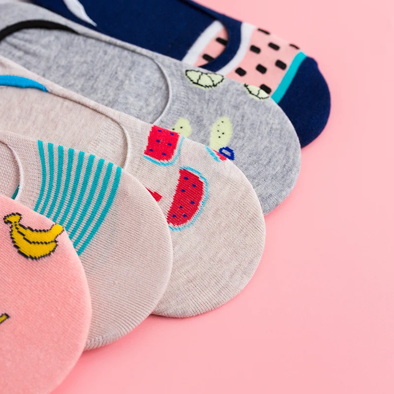 5 пар, Новое поступление женские носки Веселые фрукты симпатичная незаметной силиконовой противоскользящей вставкой на подошве, Kawaii, носки на весну, невидимые хлопковые носки; Большие размеры 34-40, уличная одежда