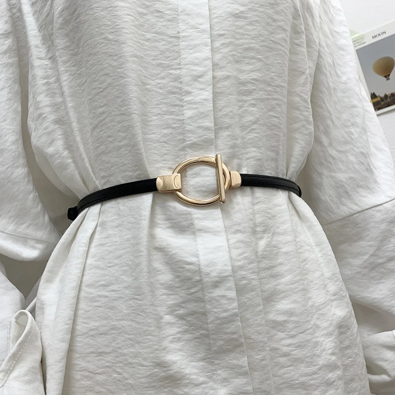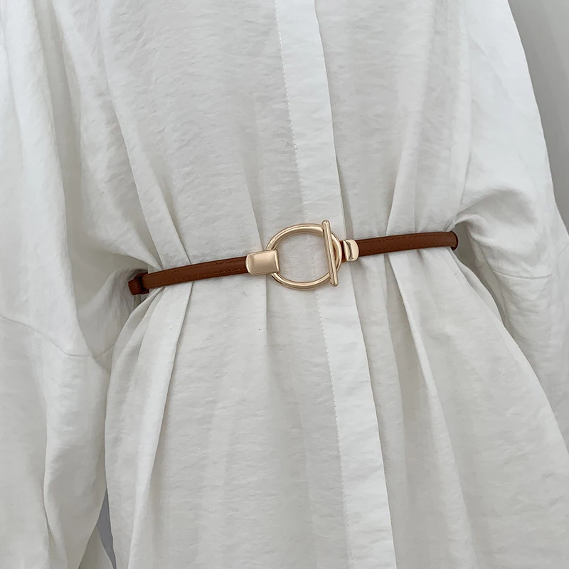 Женский Золотой овальный пояс с пряжкой, новый регулируемый тонкий ремень из искусственной кожи, простой пояс из лакированной кожи для свадьбы