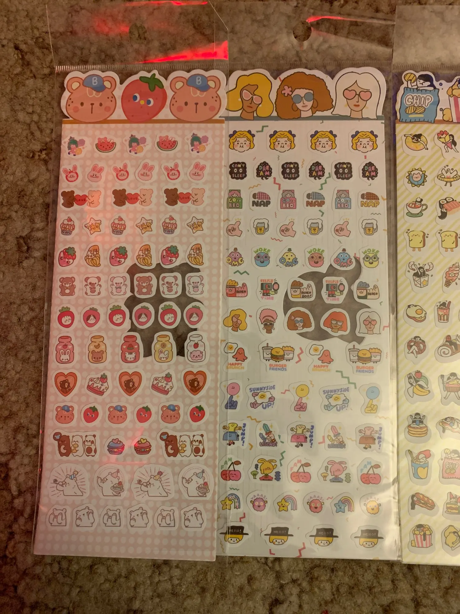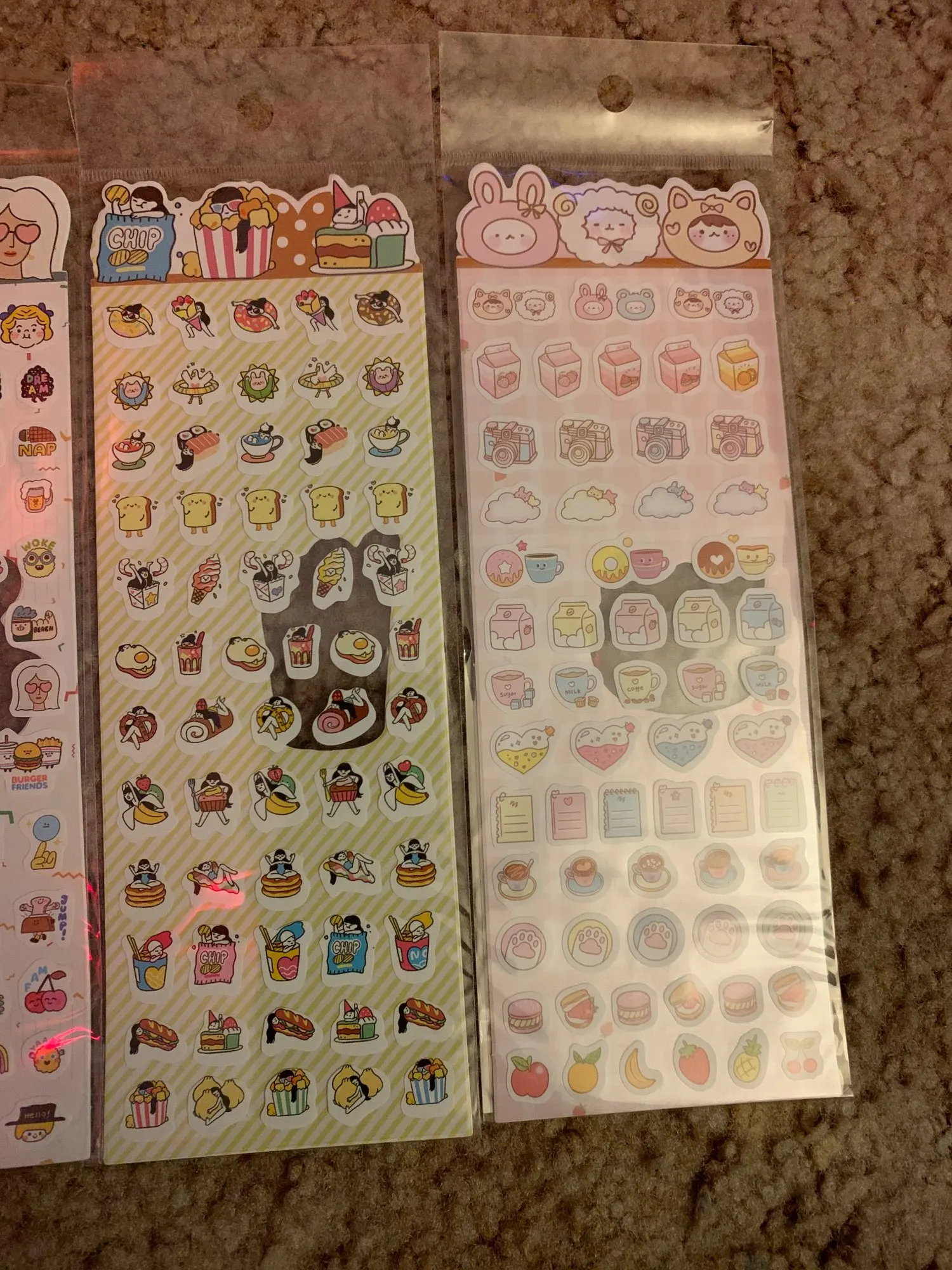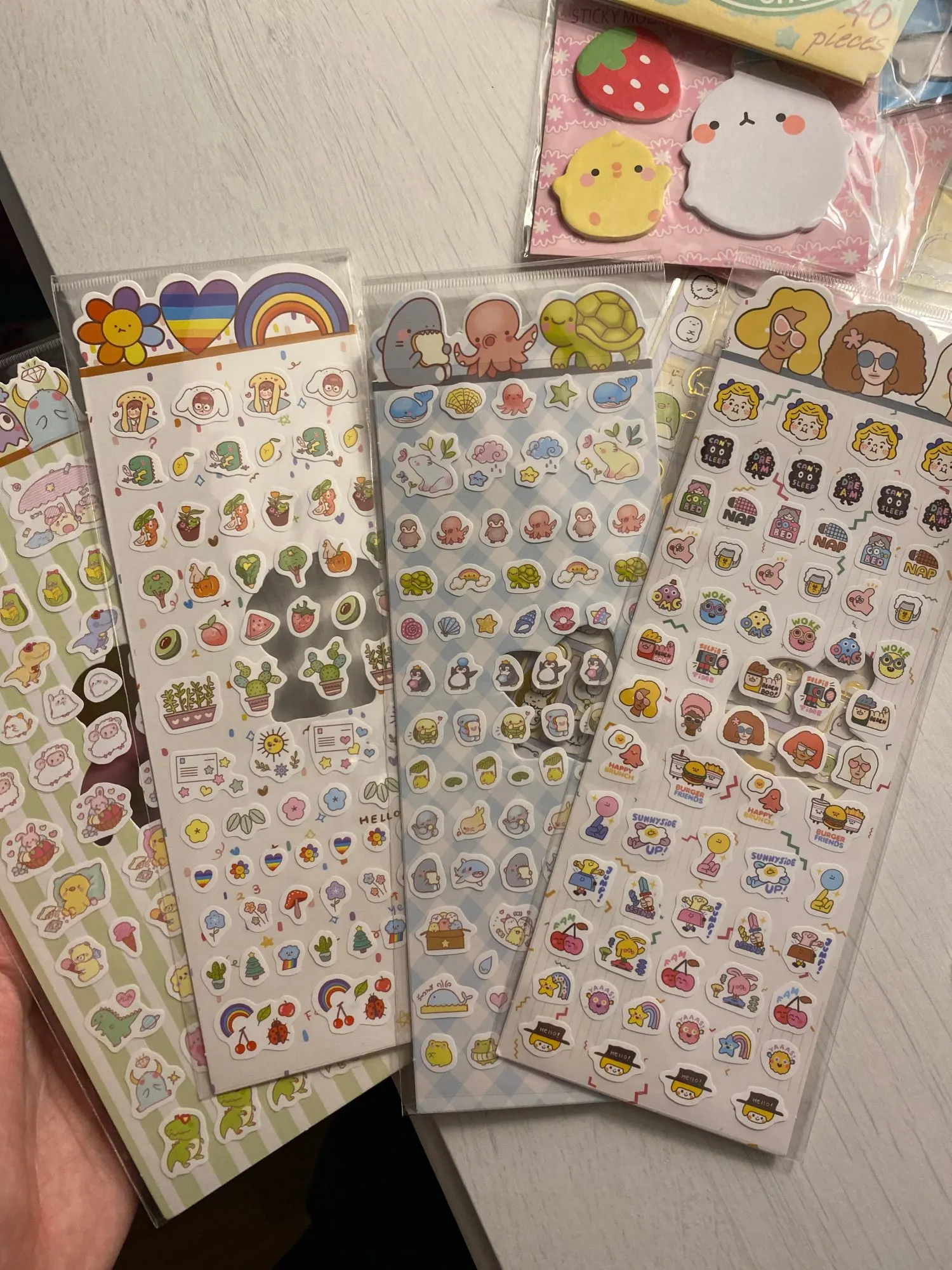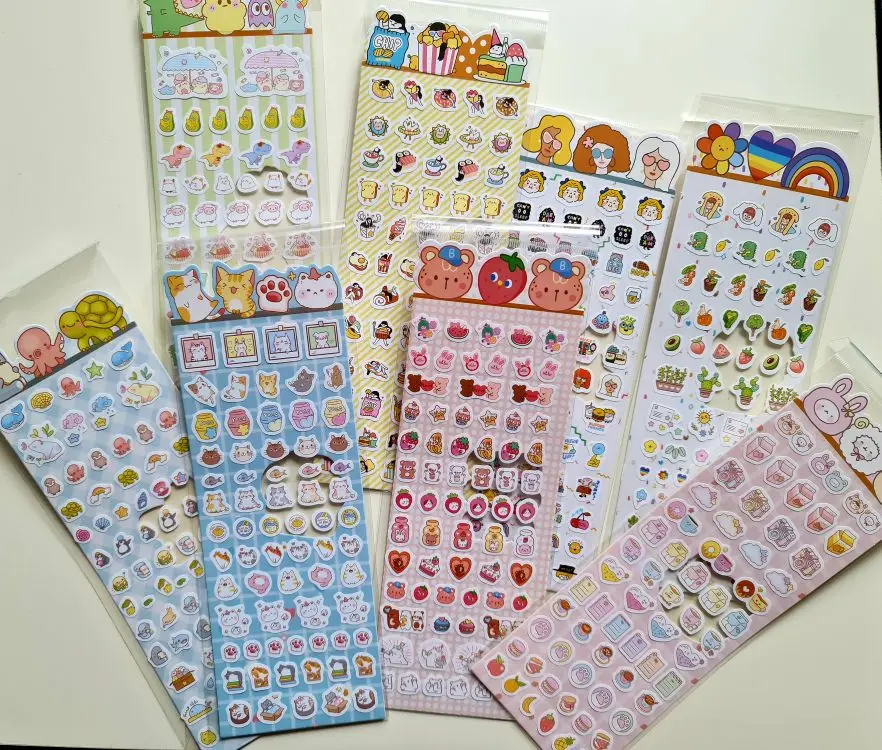 милые наклейки, 4 упаковки, надо было все заказывать. Долгая доставка, но это из-за почты россии, потому что посылка была в моей стране и долго не приходила