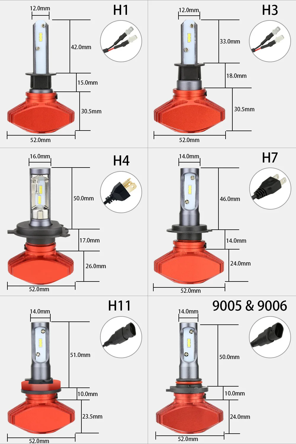2 шт., Автомобильные светодиодные лампы H4 led h7 h1 h11 hb3 9005 hb4 9006 12 в 80 Вт 8000 лм