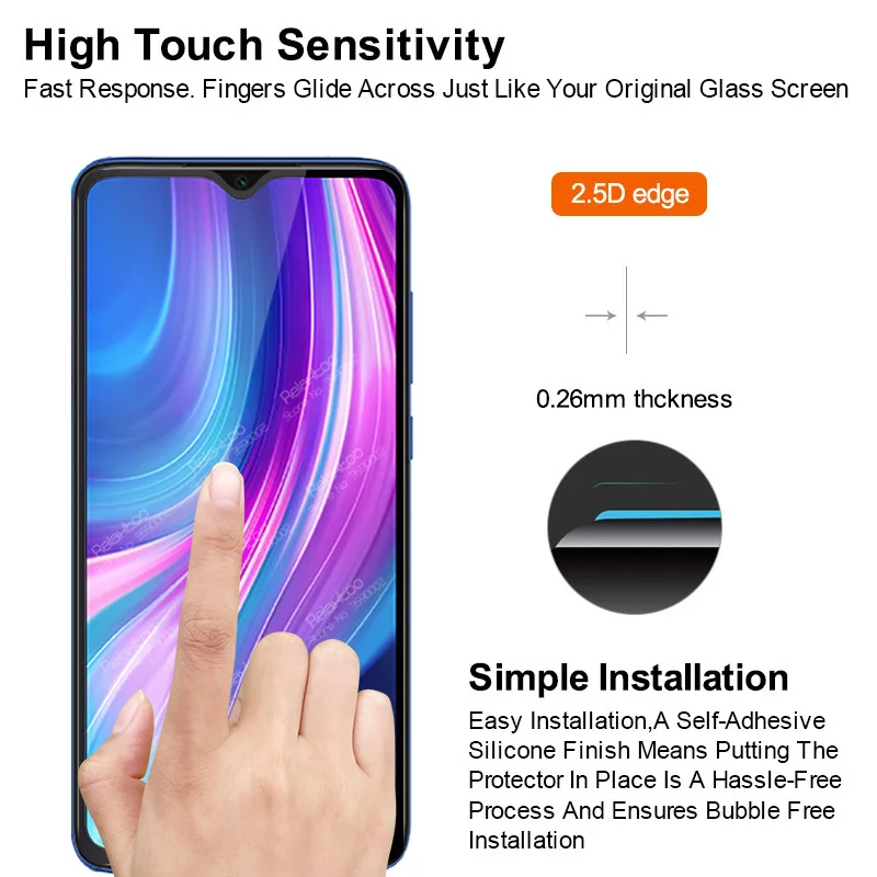 Features 19D cover Curved Edge coverage glass For xiaomi redmi note 9 pro