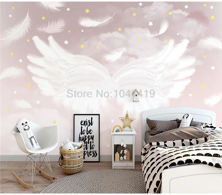Фотообои скандинавские, ручная роспись, фэнтези, крылья перьев, звездное небо, роспись детской комнаты, внутренняя стена, 3D обои