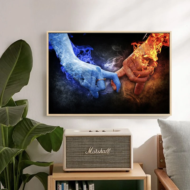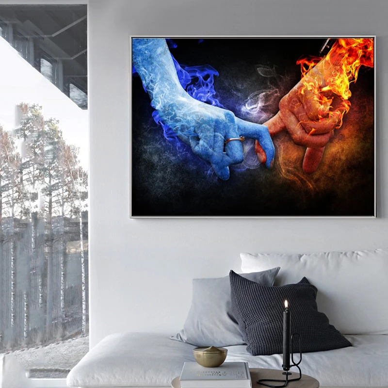Картина лед и пламя, настенная Картина на холсте, с пальцами, для гостиной, спальни, без рамки