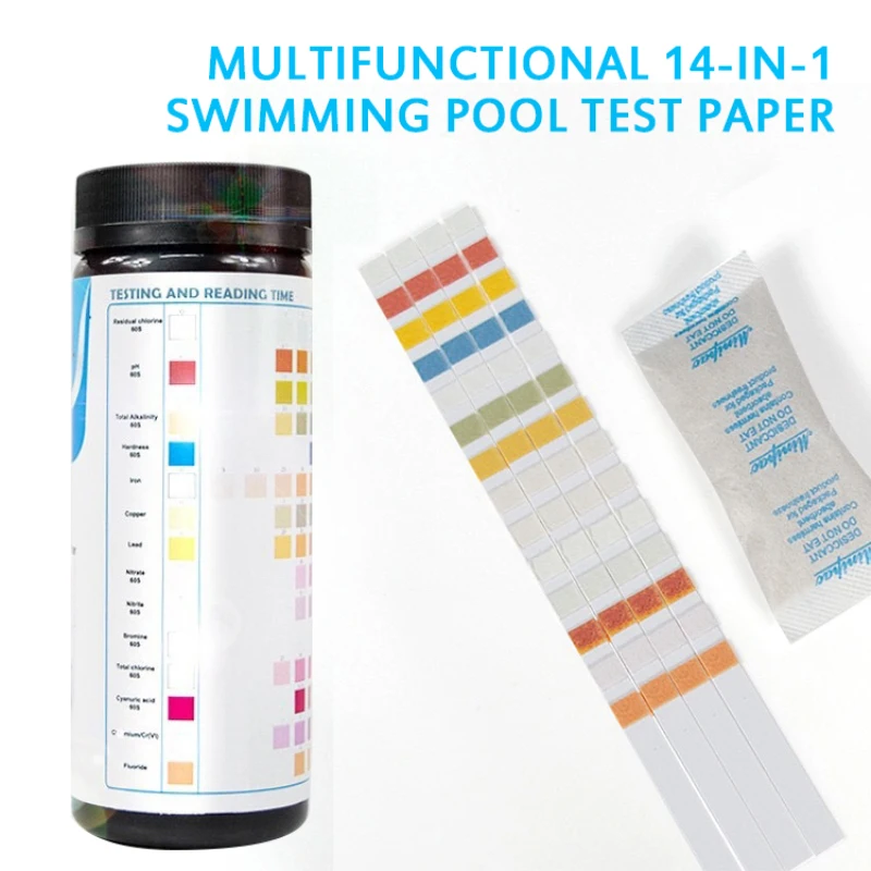 Тест-бумага 14 в 1 для бассейна, набор для испытания качества питьевой воды, остаточный хлор, значение PH, Щелочность, твердость
