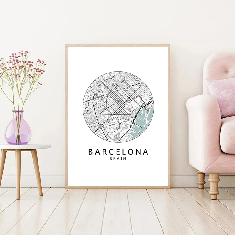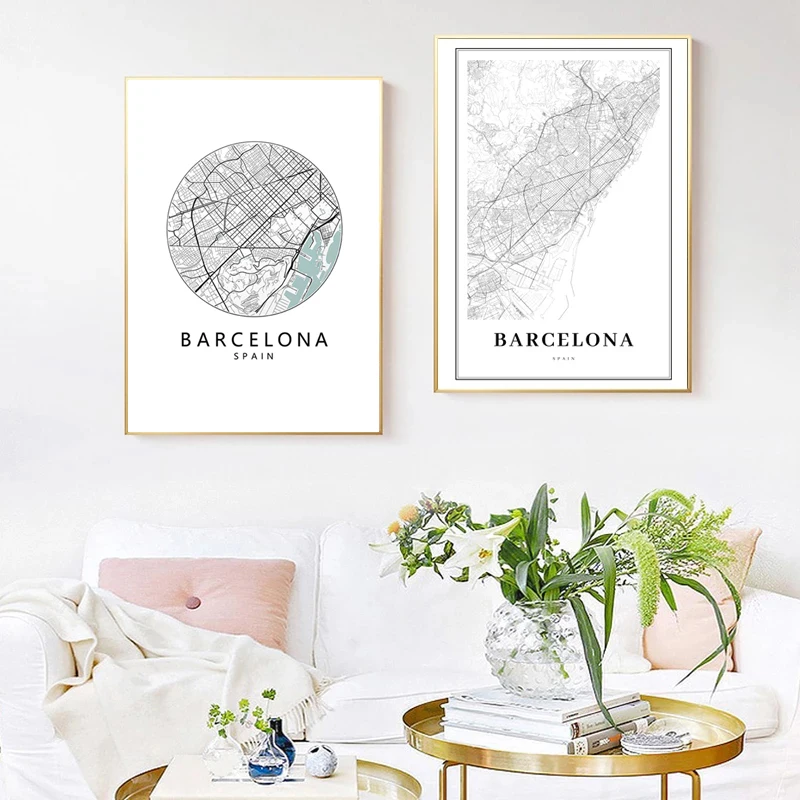 PurposeSpanish Barcelona City Map Art Painting Pictures Home Decor