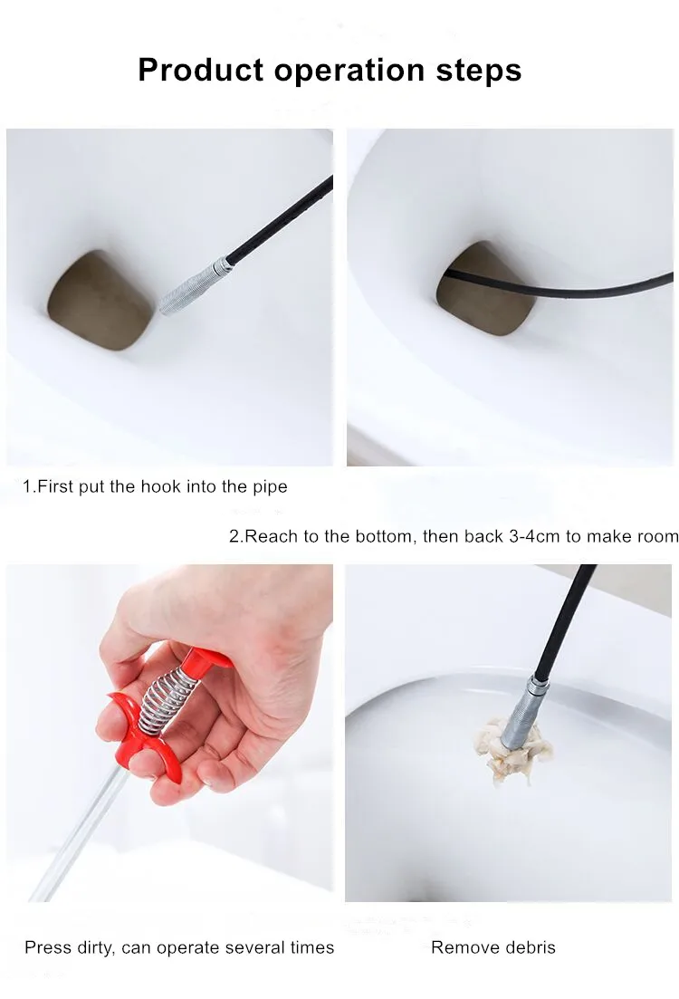 100% новое качество Легко очистите грязь от трубки Пружина может быть свободно согнута без деформации, подходит для очистки водопроводных труб Быстрый и простой способ удаления медленно движущихся сточных вод, вызванных засоренными волосами в ванной комнате. Канализация не мешает. Бытовой чистящий крючок улавливает закупорку раковина канализация и очищает волосяную трубу.
