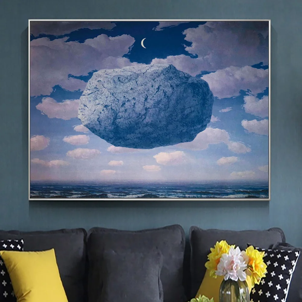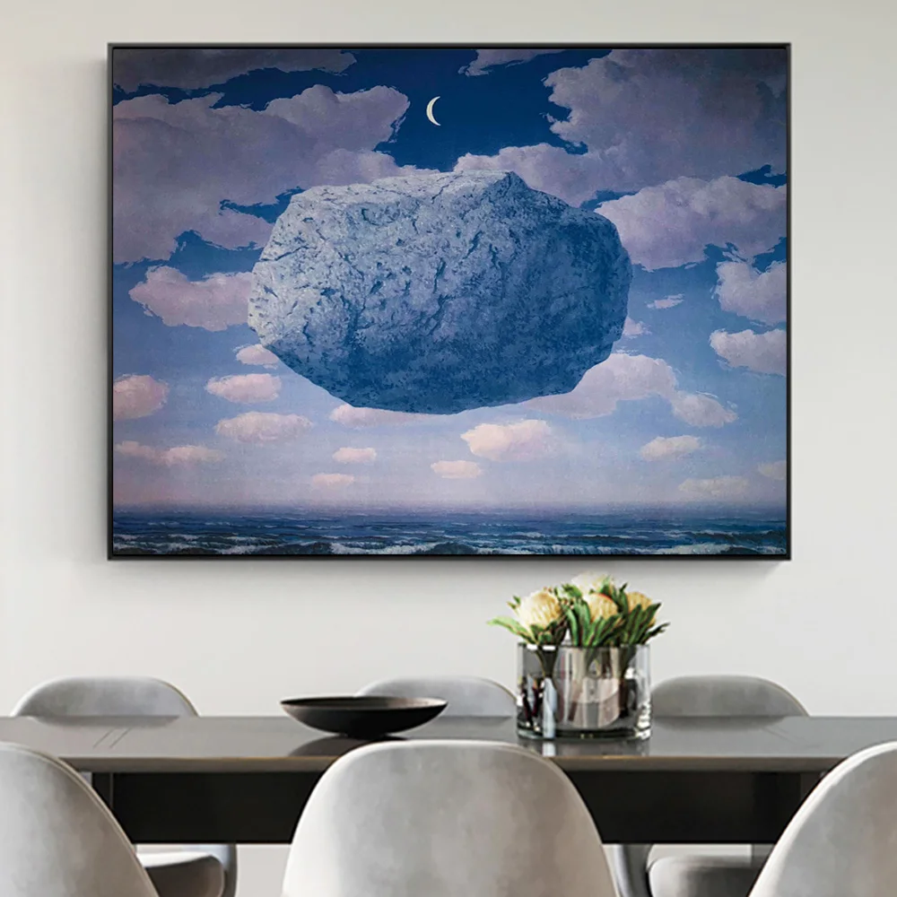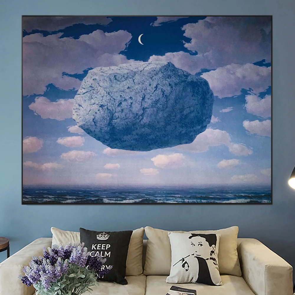 Rene Magritte с синим камнем в небом ночным пейзажем Сюрреализм плакат и принты картины на холсте абстрактные картины для Гостиная украшения